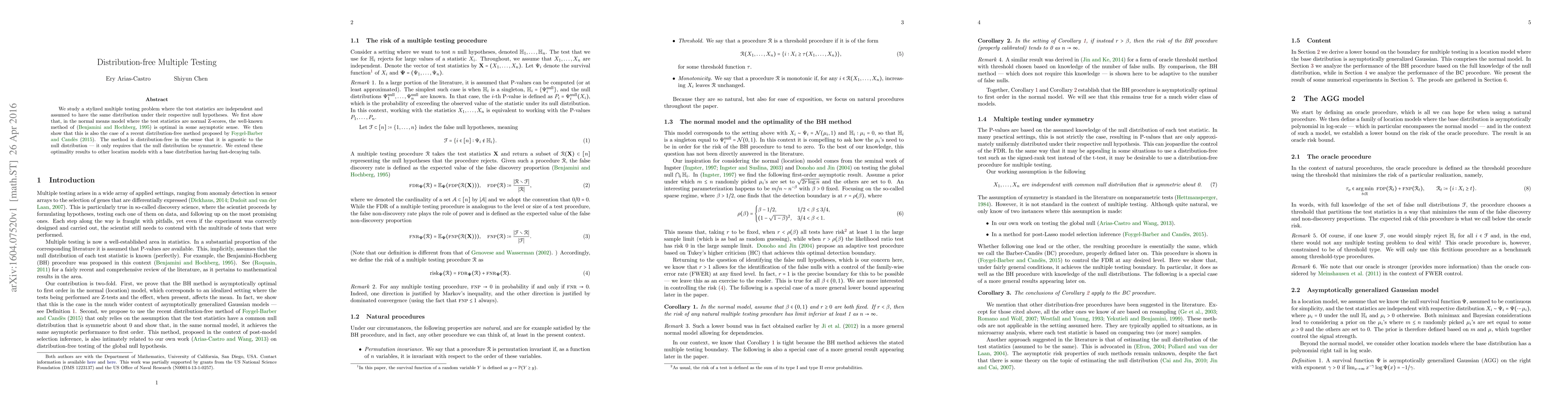 We study a stylized multiple testing problem where the test statistics are independent and assumed to have the same distribution under their respective null hypotheses. We first show that, in the normal means model where the test statistics are normal Z-scores, the well-known method of (Benjamini and Hochberg, 1995) is optimal in some asymptotic sense. We then show that this is also the case of a recent distribution-free method proposed by Foygel-Barber and Cand\`es (2015). The method is distribution-free in the sense that it is agnostic to the null distribution - it only requires that the null distribution be symmetric. We extend these optimality results to other location models with a base distribution having fast-decaying tails.