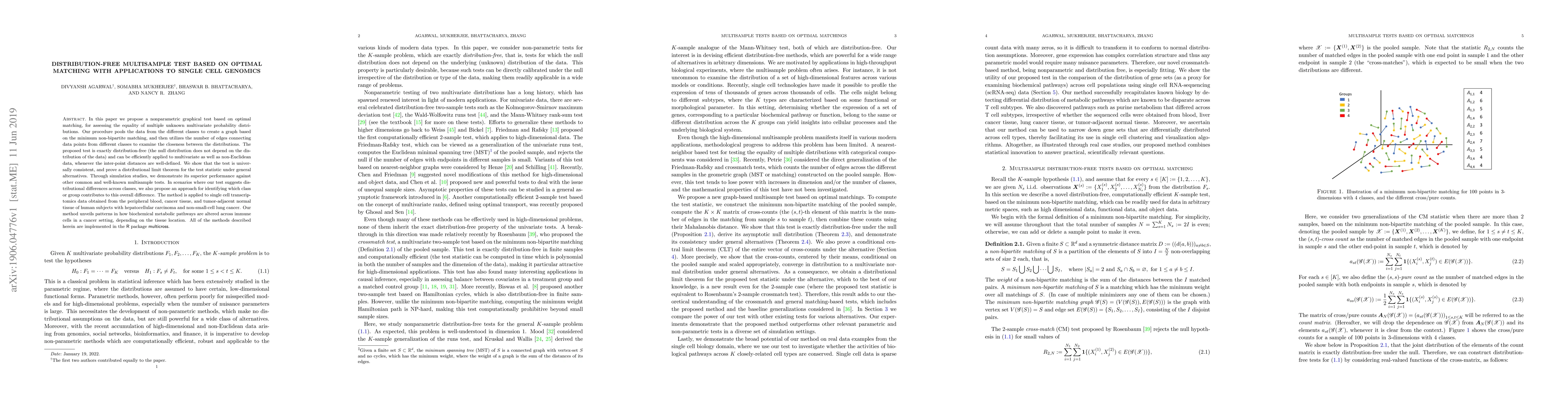 A novel nonparametric test based on optimal matching is proposed for comparing multiple multivariate probability distributions, with applications in single cell genomics, showing superior performance over existing tests and identifying class-specific differences.