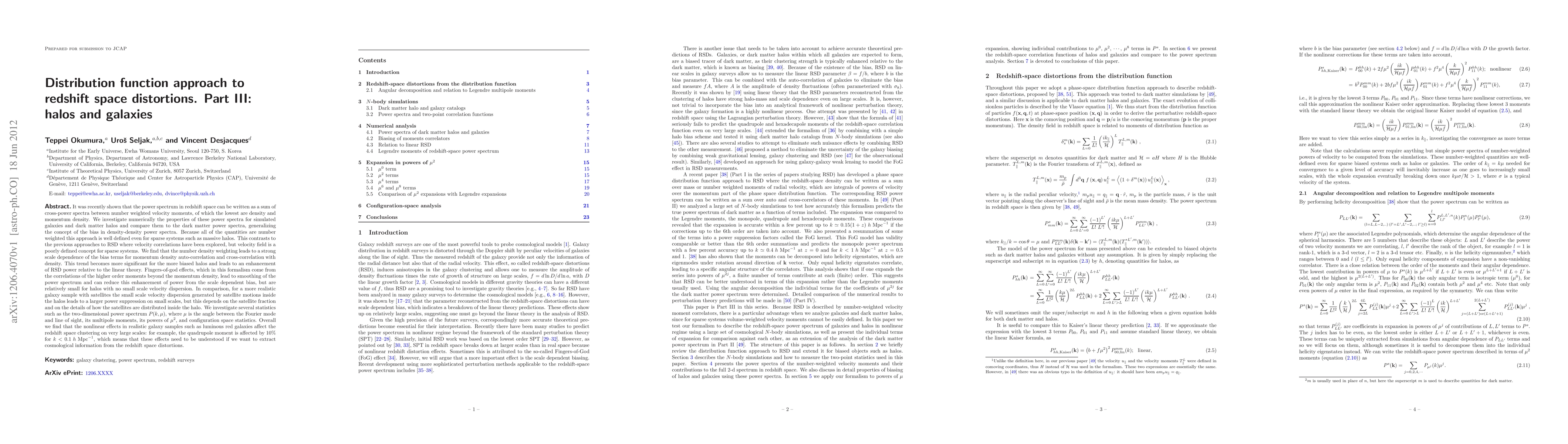 This paper explores the distribution function approach to redshift space distortions (RSD) for simulated galaxies and dark matter halos, revealing a strong scale dependence in bias terms due to number density weighting. It finds that nonlinear effects in realistic galaxy samples, such as luminous red galaxies, significantly affect large-scale redshift space clustering, necessitating a better understanding of these effects for cosmological insights.