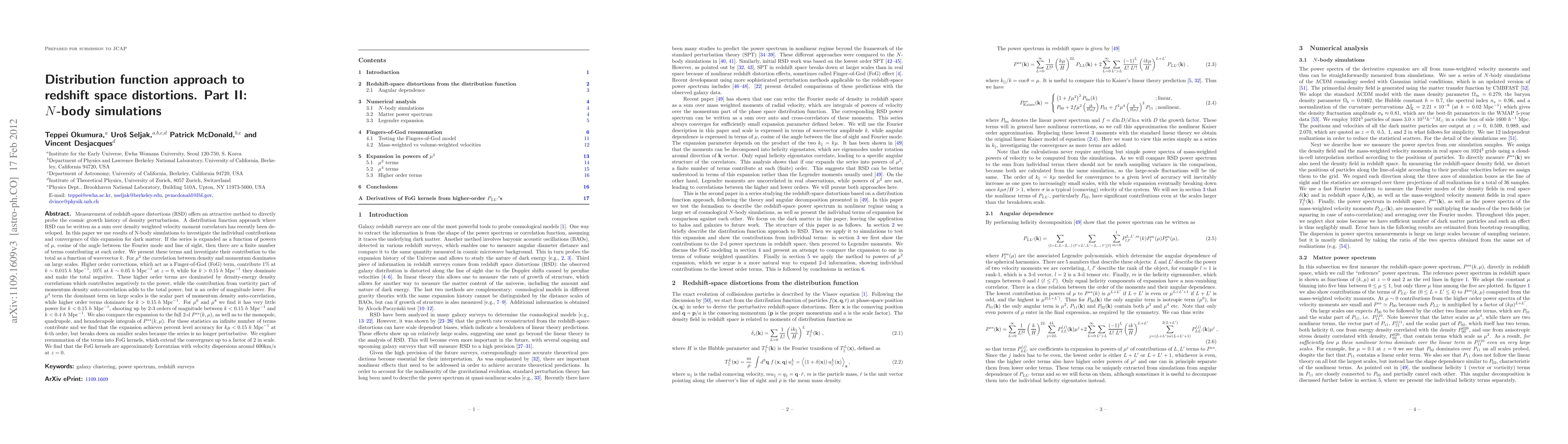 This paper uses N-body simulations to analyze redshift-space distortions (RSD) through a distribution function approach, examining the contributions of various terms in the expansion series. Higher-order terms, acting as Finger-of-God corrections, significantly impact RSD on scales larger than 0.15h/Mpc, while the series expansion achieves accuracy up to 6th order for kmu<0.15h/Mpc, but breaks down on smaller scales.