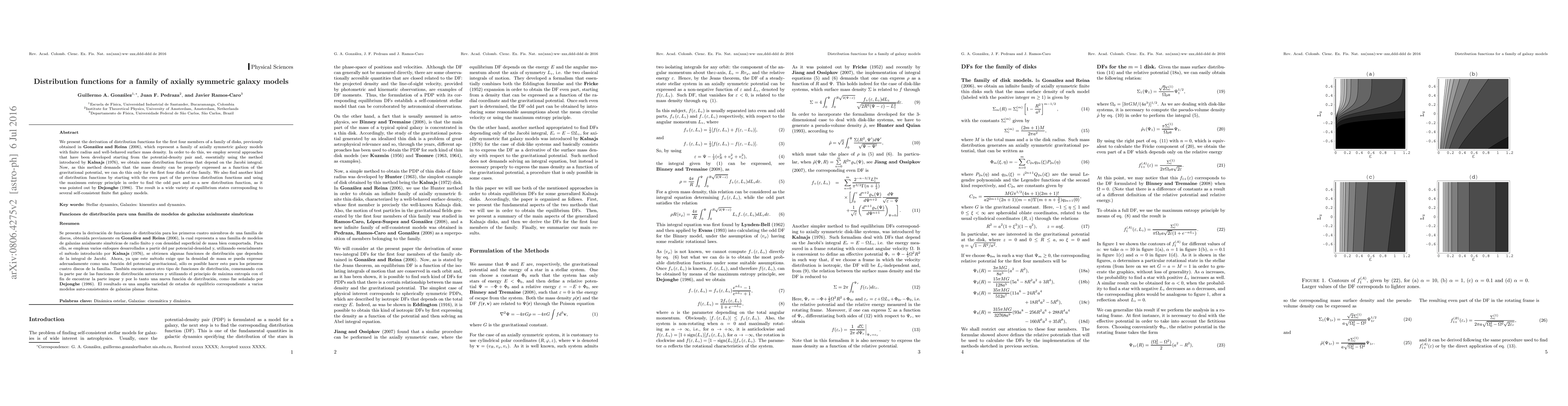 We present the derivation of distribution functions for the first four members of a family of disks, previously obtained in (MNRAS, 371, 1873, 2006), which represent a family of axially symmetric galaxy models with finite radius and well behaved surface mass density. In order to do this we employ several approaches that have been developed starting from the potential-density pair and, essentially using the method introduced by Kalnajs (Ap. J., 205, 751, 1976) we obtain some distribution functions that depend on the Jacobi integral. Now, as this method demands that the mass density can be properly expressed as a function of the gravitational potential, we can do this only for the first four discs of the family. We also find another kind of distribution functions by starting with the even part of the previous distribution functions and using the maximum entropy principle in order to find the odd part and so a new distribution function, as it was pointed out by Dejonghe (Phys. Rep., 133, 217, 1986). The result is a wide variety of equilibrium states corresponding to several self-consistent finite flat galaxy models.