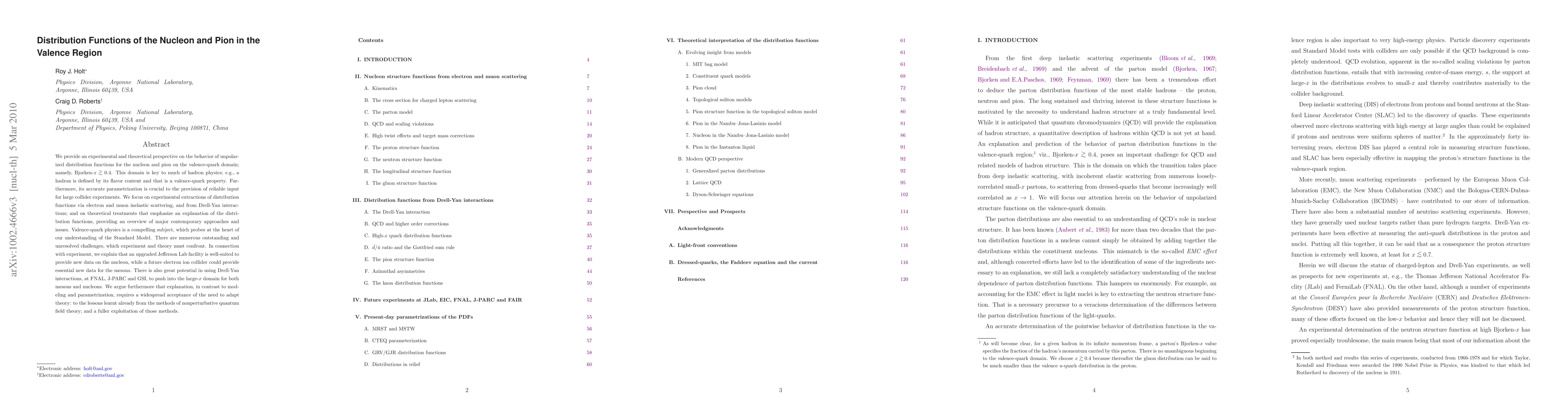 We provide an experimental and theoretical perspective on the behavior of unpolarized distribution functions for the nucleon and pion on the valence-quark domain; namely, Bjorken-x \gtrsim 0.4. This domain is key to much of hadron physics; e.g., a hadron is defined by its flavor content and that is a valence-quark property. Furthermore, its accurate parametrization is crucial to the provision of reliable input for large collider experiments. We focus on experimental extractions of distribution functions via electron and muon inelastic scattering, and from Drell-Yan interactions; and on theoretical treatments that emphasize an explanation of the distribution functions, providing an overview of major contemporary approaches and issues. Valence-quark physics is a compelling subject, which probes at the heart of our understanding of the Standard Model. There are numerous outstanding and unresolved challenges, which experiment and theory must confront. In connection with experiment, we explain that an upgraded Jefferson Lab facility is well-suited to provide new data on the nucleon, while a future electron ion collider could provide essential new data for the mesons. There is also great potential in using Drell-Yan interactions, at FNAL, J-PARC and GSI, to push into the large-x domain for both mesons and nucleons. We argue furthermore that explanation, in contrast to modeling and parametrization, requires a widespread acceptance of the need to adapt theory: to the lessons learnt already from the methods of nonperturbative quantum field theory; and a fuller exploitation of those methods.