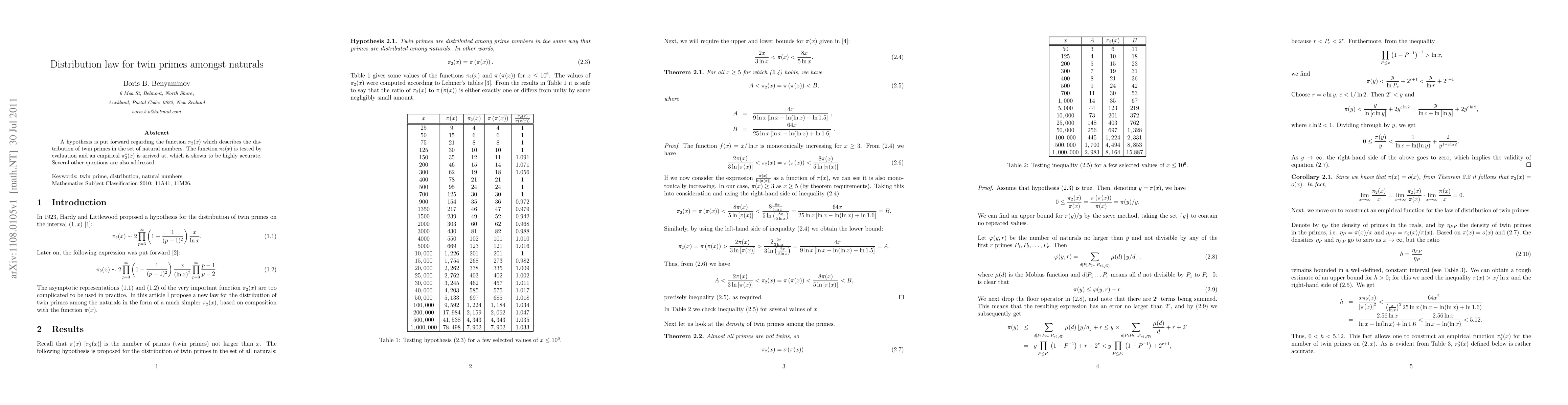 A hypothesis is put forward regarding the function $\pi_2(x)$ which describes the distribution of twin primes in the set of natural numbers. The function $\pi_2(x)$ is tested by evaluation and an empirical $\pi_2^{\ast}(x)$ is arrived at, which is shown to be highly accurate. Several other questions are also addressed.