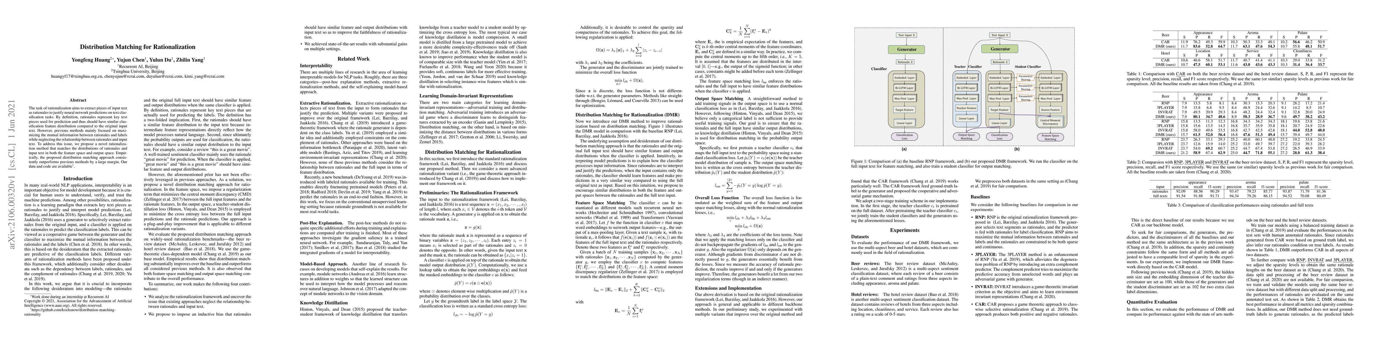 The paper proposes a novel rationalization method that matches the distribution of rationales to the original input text in both feature and output spaces, significantly outperforming previous methods that focus solely on mutual information. The new approach achieves better alignment, leading to improved performance in text classification tasks.