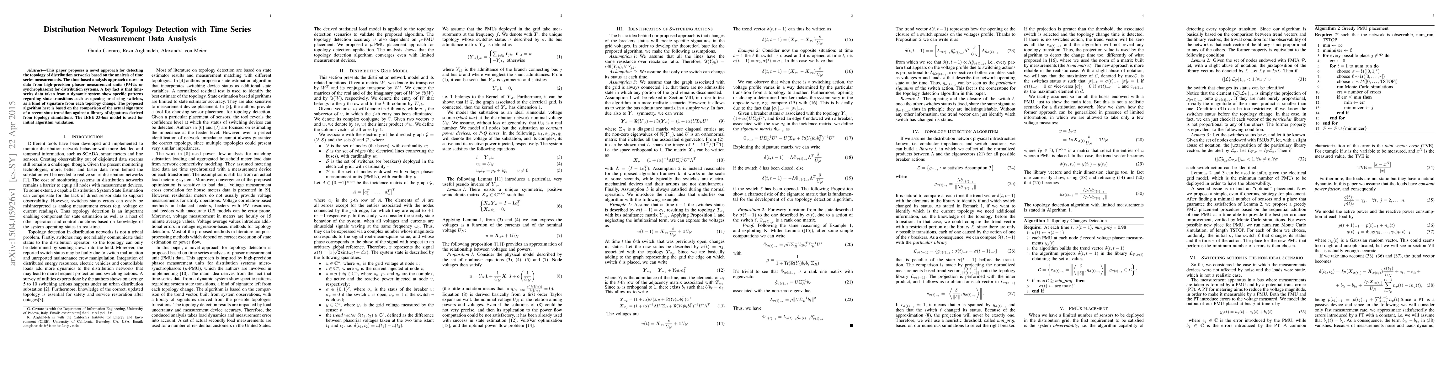 This paper introduces a novel method for detecting distribution network topology using time series measurements from phasor measurement units. The algorithm identifies topology changes by comparing real-time signatures against a library of simulated signatures, validated on the IEEE 33-bus model.