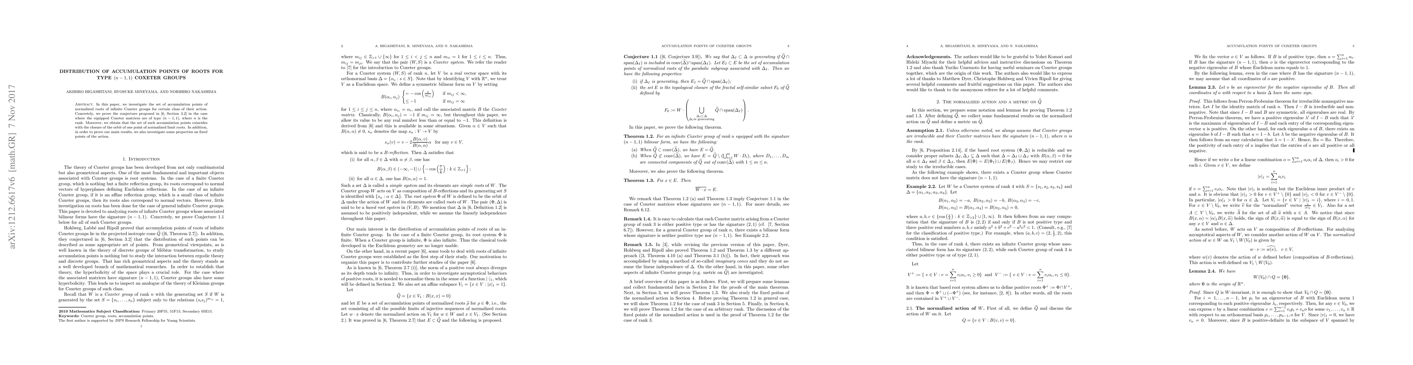 This paper proves a conjecture regarding the accumulation points of normalized roots for type $(n-1,1)$ Coxeter groups, showing that these points coincide with the closure of the orbit of a single normalized limit root. Additionally, it explores properties of fixed points related to the group's action.