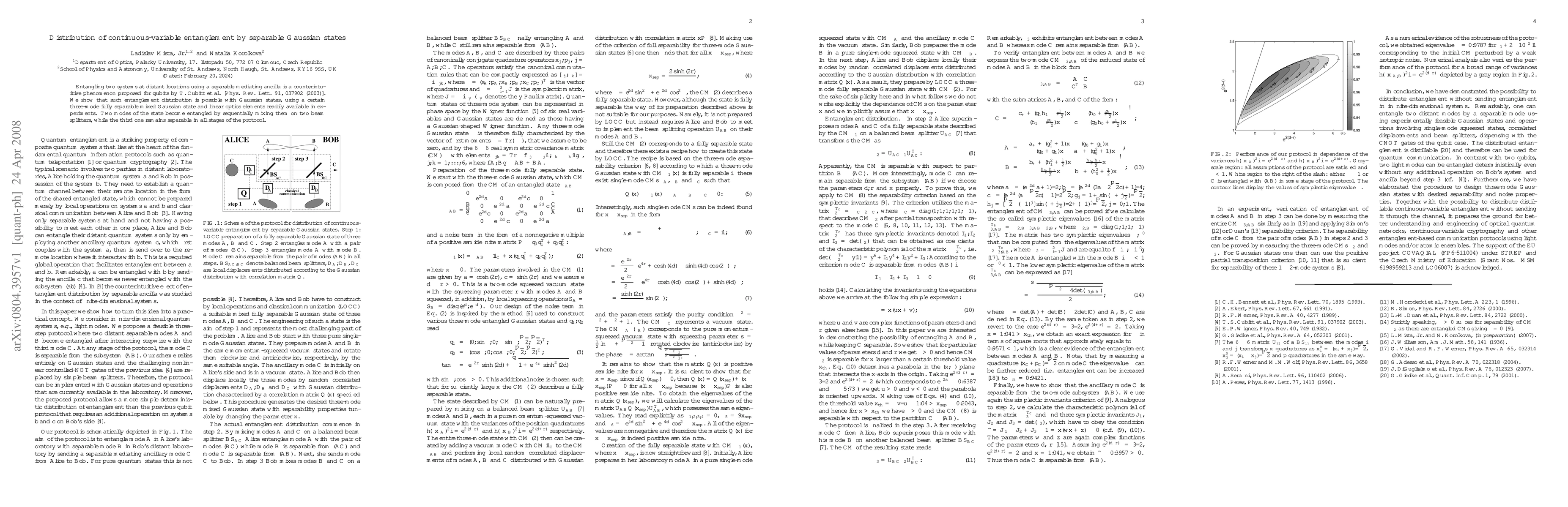 This paper demonstrates the distribution of continuous-variable entanglement using separable Gaussian states and linear optics. It shows that two modes of a three-mode Gaussian state can become entangled through sequential beam splitter mixing, while the third mode remains separable throughout the process.