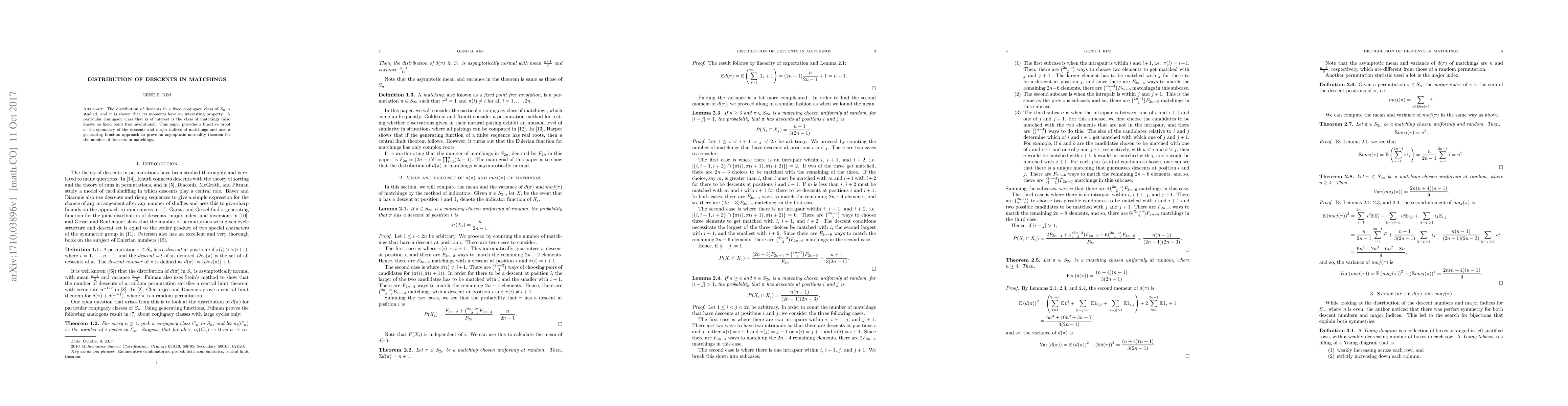 This paper investigates the distribution of descents in matchings within a fixed conjugacy class of the symmetric group $S_n$, proving the symmetry of descents and major indices via a bijective proof and demonstrating asymptotic normality using generating functions.