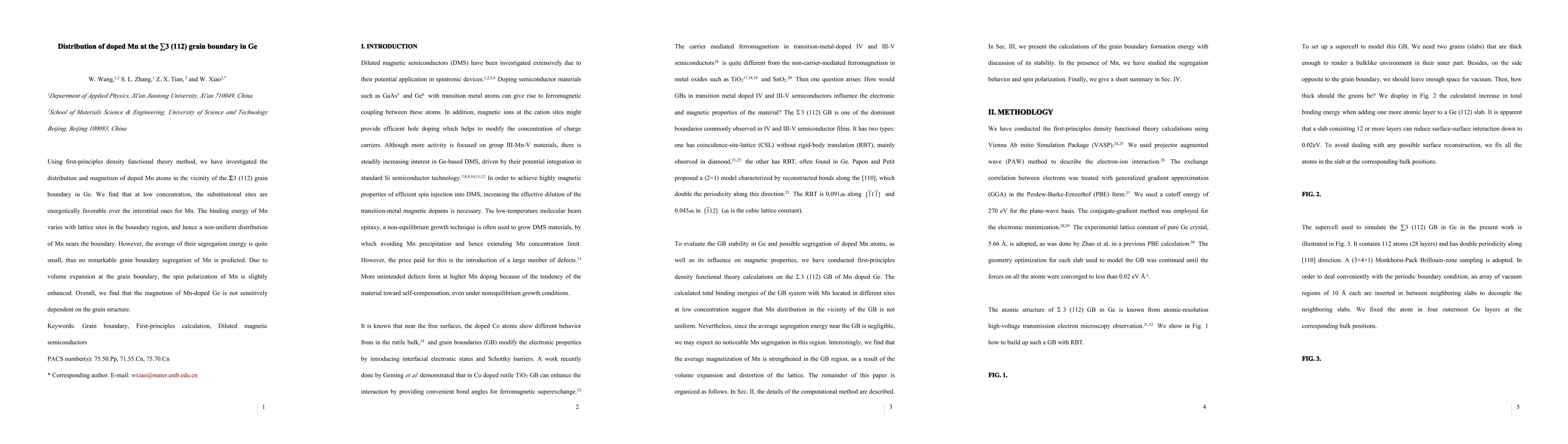 Researchers used density functional theory to study the distribution of manganese atoms at a grain boundary in germanium, finding that they tend to cluster around energetically favorable sites but do not cause significant segregation.