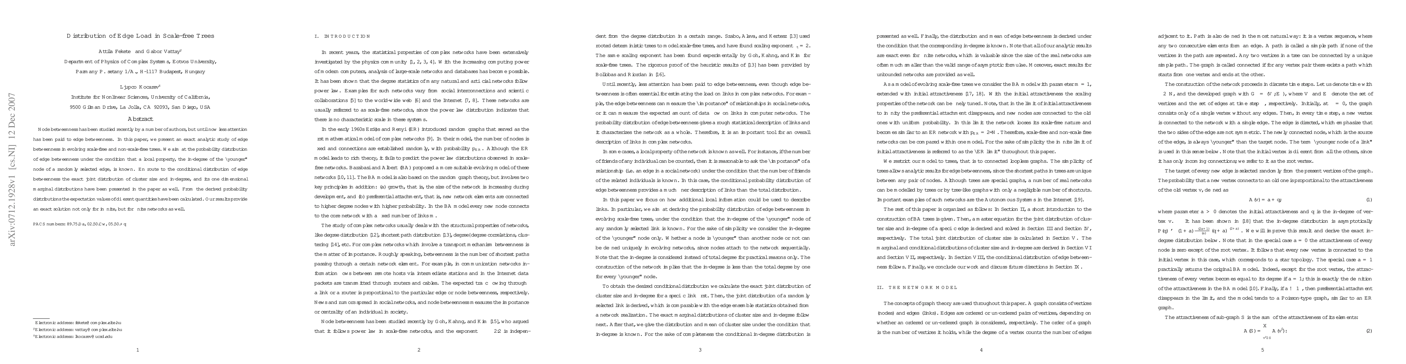 Node betweenness has been studied recently by a number of authors, but until now less attention has been paid to edge betweenness. In this paper, we present an exact analytic study of edge betweenness in evolving scale-free and non-scale-free trees. We aim at the probability distribution of edge betweenness under the condition that a local property, the in-degree of the ``younger'' node of a randomly selected edge, is known. En route to the conditional distribution of edge betweenness the exact joint distribution of cluster size and in-degree, and its one dimensional marginal distributions have been presented in the paper as well. From the derived probability distributions the expectation values of different quantities have been calculated. Our results provide an exact solution not only for infinite, but for finite networks as well.