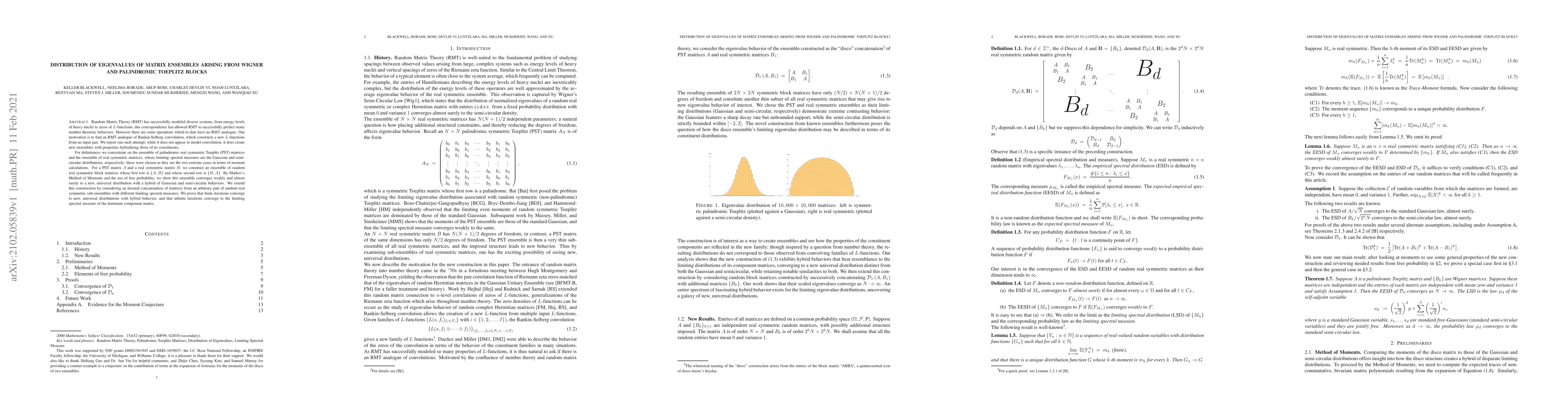 Random Matrix Theory (RMT) has successfully modeled diverse systems, from energy levels of heavy nuclei to zeros of $L$-functions; this correspondence has allowed RMT to successfully predict many number theoretic behaviors. However there are some operations which to date have no RMT analogue. Our motivation is to find an RMT analogue of Rankin-Selberg convolution, which constructs a new $L$-functions from an input pair. We report one such attempt; while it does not appear to model convolution, it does create new ensembles with properties hybridizing those of its constituents. For definiteness we concentrate on the ensemble of palindromic real symmetric Toeplitz (PST) matrices and the ensemble of real symmetric matrices, whose limiting spectral measures are the Gaussian and semi-circular distributions, respectively; these were chosen as they are the two extreme cases in terms of moment calculations. For a PST matrix $A$ and a real symmetric matrix $B$, we construct an ensemble of random real symmetric block matrices whose first row is $\lbrace A, B \rbrace$ and whose second row is $\lbrace B, A \rbrace$. By Markov's Method of Moments and the use of free probability, we show this ensemble converges weakly and almost surely to a new, universal distribution with a hybrid of Gaussian and semi-circular behaviors. We extend this construction by considering an iterated concatenation of matrices from an arbitrary pair of random real symmetric sub-ensembles with different limiting spectral measures. We prove that finite iterations converge to new, universal distributions with hybrid behavior, and that infinite iterations converge to the limiting spectral measure of the dominant component matrix.