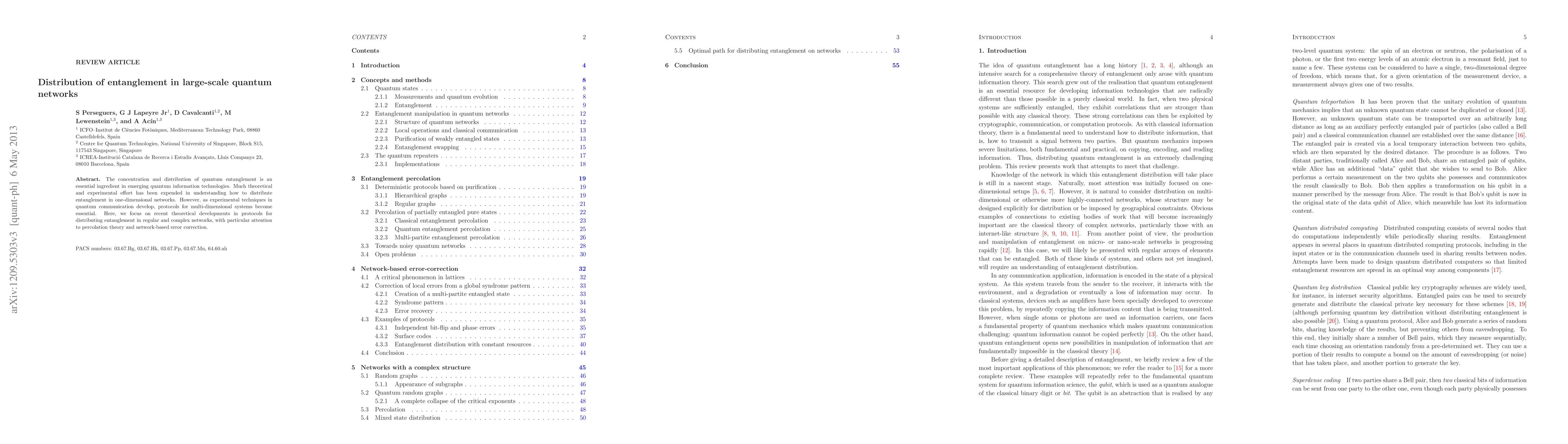 The concentration and distribution of quantum entanglement is an essential ingredient in emerging quantum information technologies. Much theoretical and experimental effort has been expended in understanding how to distribute entanglement in one-dimensional networks. However, as experimental techniques in quantum communication develop, protocols for multi-dimensional systems become essential. Here, we focus on recent theoretical developments in protocols for distributing entanglement in regular and complex networks, with particular attention to percolation theory and network-based error correction.