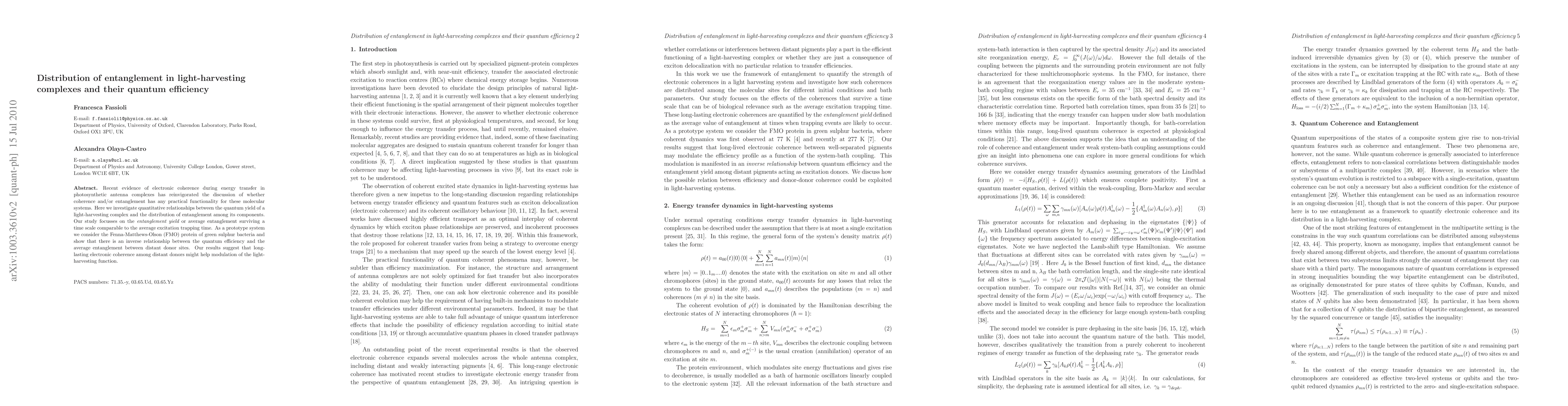 This study examines the correlation between quantum efficiency and entanglement distribution in light-harvesting complexes, specifically the FMO protein, finding an inverse relationship where higher average entanglement correlates with lower quantum efficiency, suggesting coherence may aid in modulating light-harvesting.