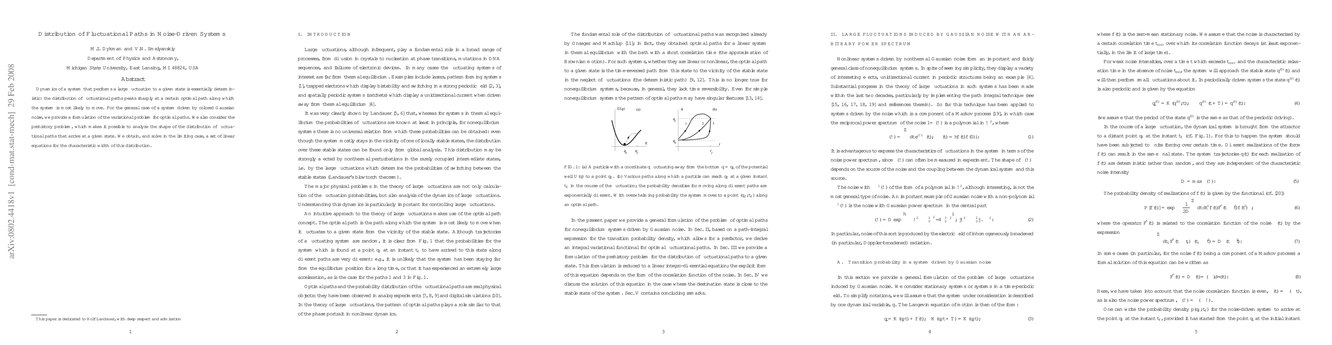 Researchers found that in noise-driven systems, a system's path to a target state peaks at an optimal path, with the distribution of paths becoming sharper as it approaches this point. They also solved for the characteristic width of the distribution, shedding light on how these systems behave under random fluctuations.