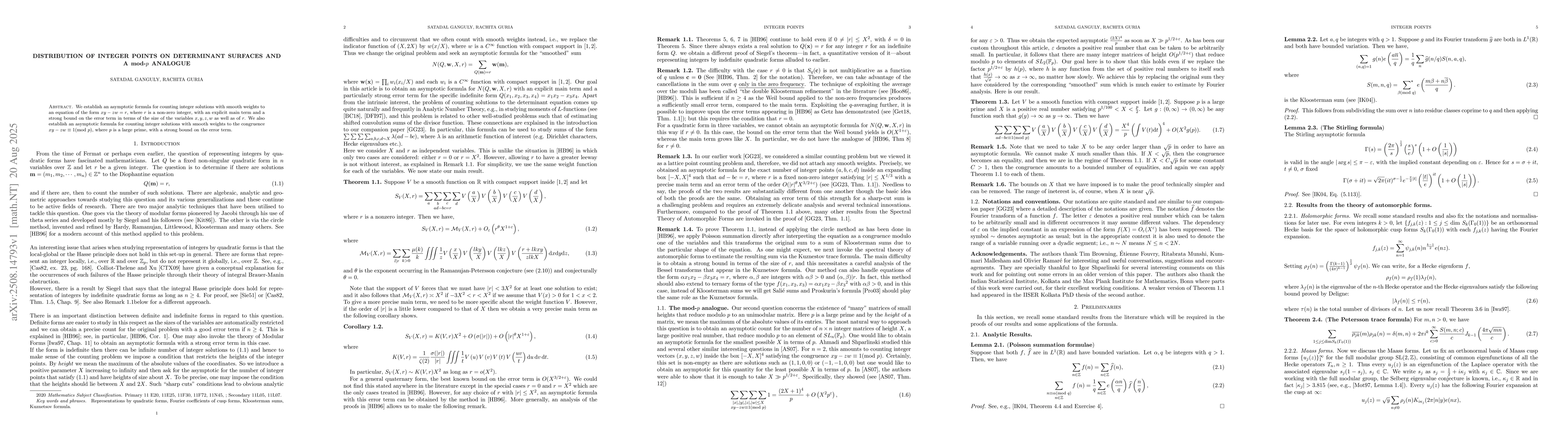 This research provides a deeper understanding of the distribution of integer points on determinant surfaces, which has applications in number theory and related fields.