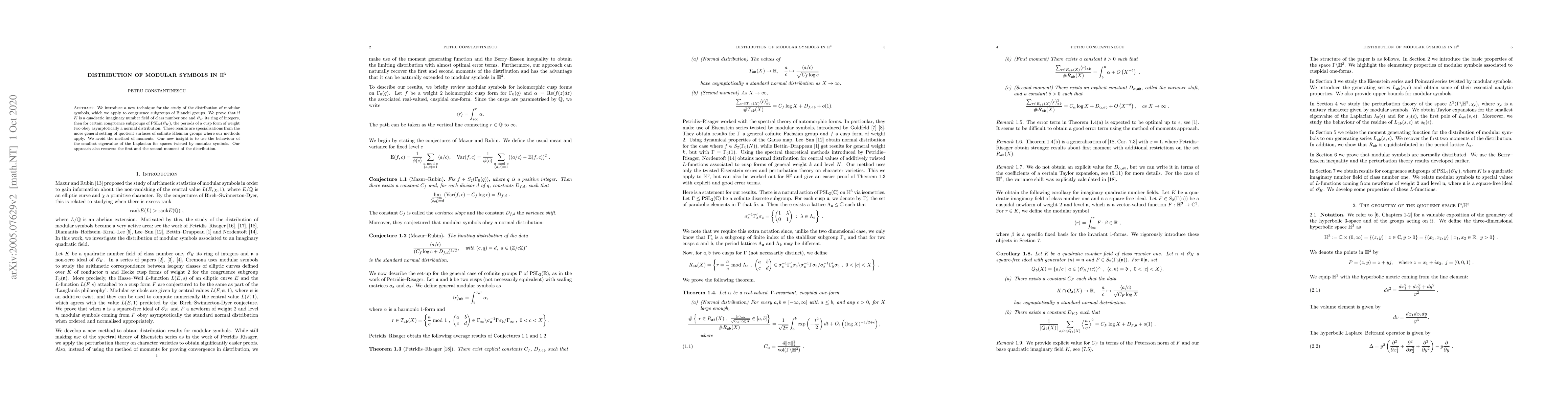 This paper introduces a novel technique for studying modular symbols applied to Bianchi groups, proving that periods of cusp forms for certain congruence subgroups follow an asymptotically normal distribution. The method leverages the smallest eigenvalue of the Laplacian in twisted spaces, avoiding the traditional method of moments.