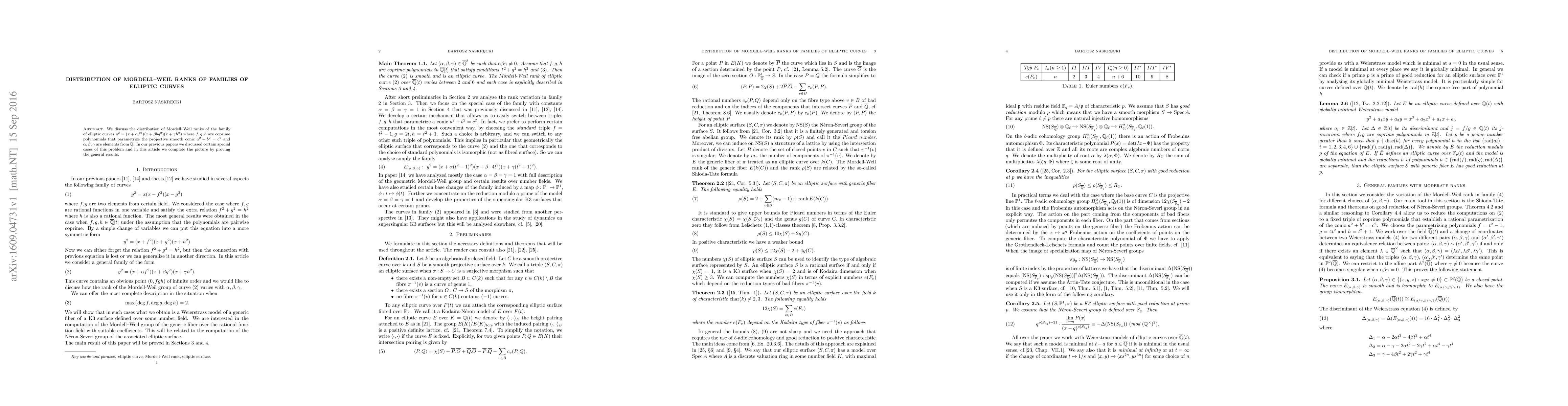 This paper investigates the distribution of Mordell-Weil ranks for a specific family of elliptic curves defined by certain polynomial parametrizations. It completes previous work on special cases by establishing general results for these elliptic curves.