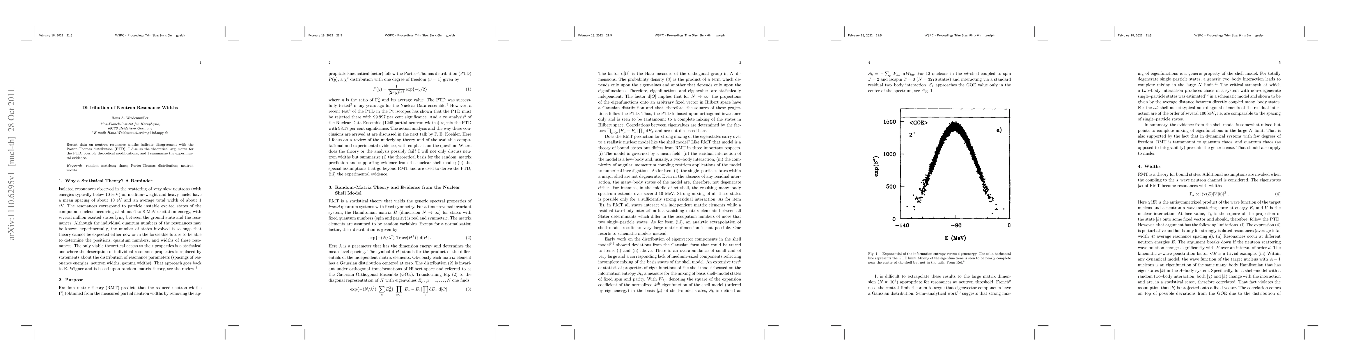 Summary: This paper examines the discrepancies between recent neutron resonance width data and the Porter-Thomas distribution, exploring theoretical justifications for the PTD, potential modifications, and summarizing relevant experimental findings.
