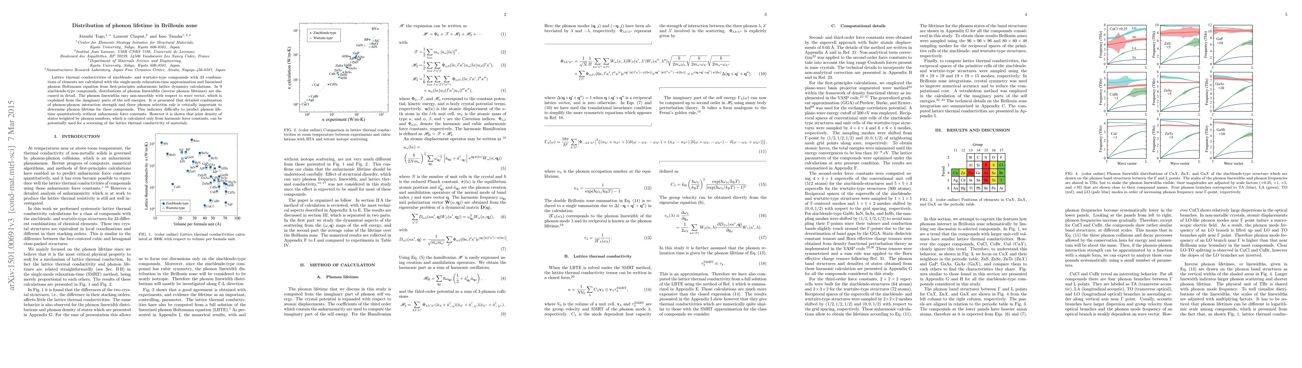 Lattice thermal conductivities of zincblende- and wurtzite-type compounds with 33 combinations of elements are calculated with the single-mode relaxation-time approximation and linearized phonon Boltzmann equation from first-principles anharmonic lattice dynamics calculations. In 9 zincblende-type compounds, distributions of phonon linewidths (inverse phonon lifetimes) are discussed in detail. The phonon linewidths vary non-smoothly with respect to wave vector, which is explained from the imaginary parts of the self energies. It is presented that detailed combination of phonon-phonon interaction strength and three phonon selection rule is critically important to determine phonon lifetime for these compounds. This indicates difficulty to predict phonon lifetime quantitatively without anharmonic force constants. However it is shown that joint density of states weighted by phonon numbers, which is calculated only from harmonic force constants, can be potentially used for a screening of the lattice thermal conductivity of materials.