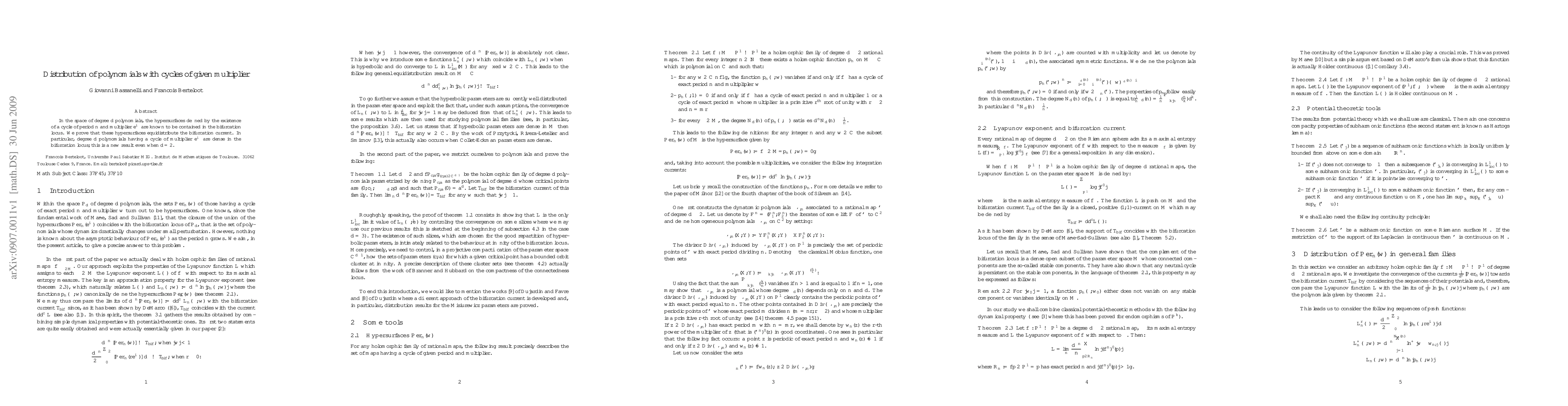 In the family of degree $d$ polynomials the hypersurfaces defined by the existence of a cycle of period $n$ and multiplier $e^{i\theta}$ are shown to equiditribute the bifurcation current.