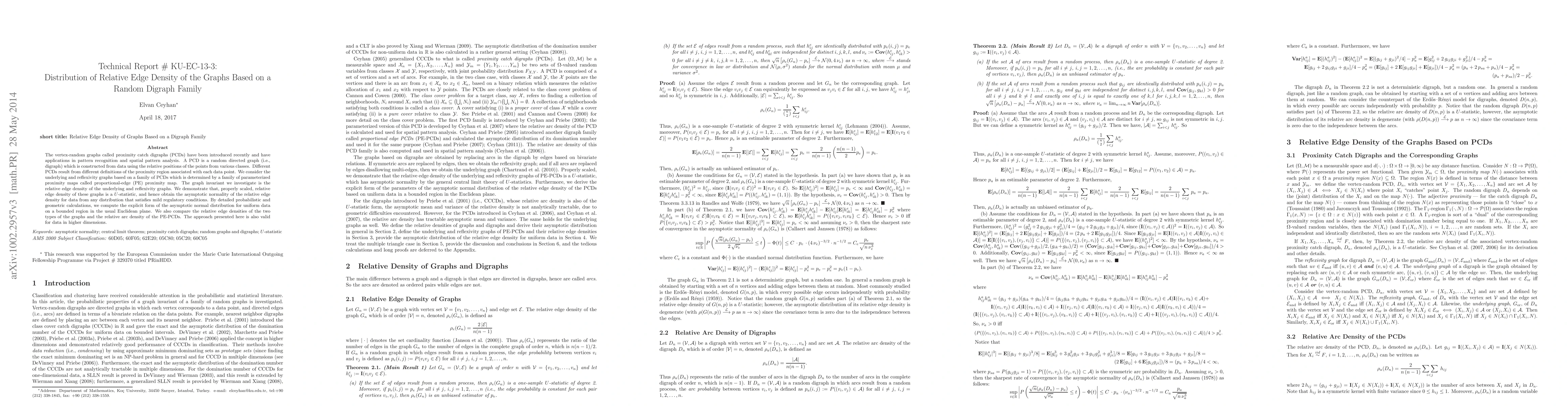The vertex-random graphs called proximity catch digraphs (PCDs) have been introduced recently and have applications in pattern recognition and spatial pattern analysis. A PCD is a random directed graph (i.e., digraph) which is constructed from data using the relative positions of the points from various classes. Different PCDs result from different definitions of the proximity region associated with each data point. We consider the underlying and reflexivity graphs based on a family of PCDs which is determined by a family of parameterized proximity maps called proportional-edge (PE) proximity map. The graph invariant we investigate is the relative edge density of the underlying and reflexivity graphs. We demonstrate that, properly scaled, relative edge density of these graphs is a $U$-statistic, and hence obtain the asymptotic normality of the relative edge density for data from any distribution that satisfies mild regulatory conditions. By detailed probabilistic and geometric calculations, we compute the explicit form of the asymptotic normal distribution for uniform data on a bounded region in the usual Euclidean plane. We also compare the relative edge densities of the two types of the graphs and the relative arc density of the PE-PCDs. The approach presented here is also valid for data in higher dimensions.