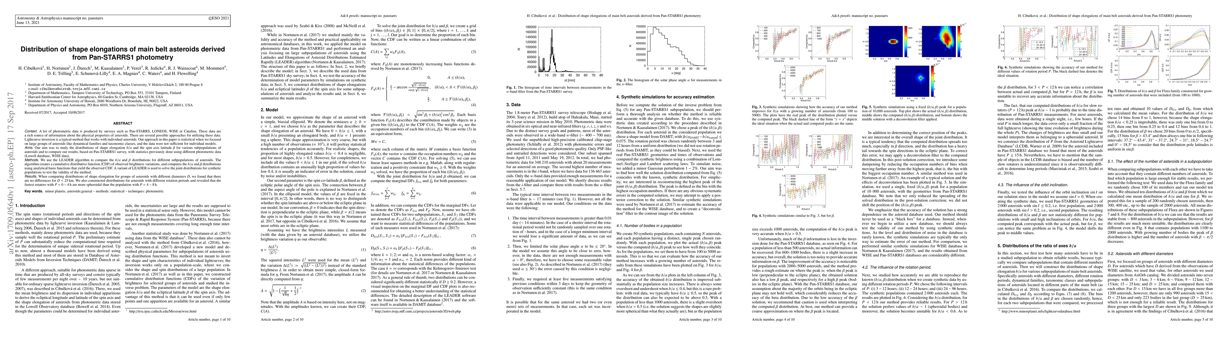 This paper investigates the distributions of shape elongations and spin axis latitudes of main belt asteroids using Pan-STARRS1 photometric data. The study reveals no significant elongation differences for asteroids smaller than 25 km and finds that faster rotators (0-4 h) are more spheroidal compared to those with rotation periods of 4-8 hours.