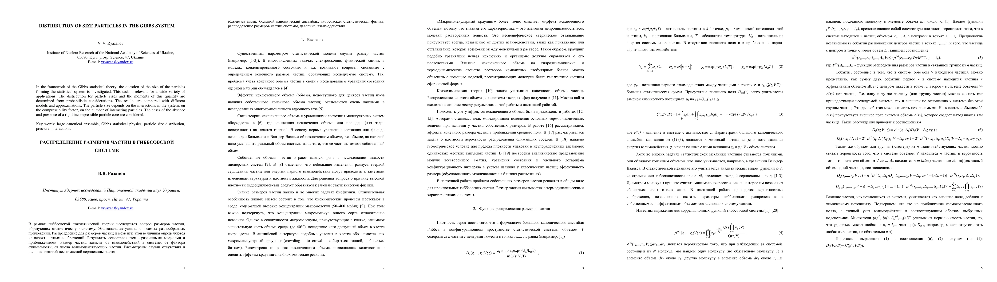 In the framework of the Gibbs statistical theory, the question of the size of the particles forming the statistical system is investigated. This task is relevant for a wide variety of applications. The distribution for particle sizes and the moments of this quantity are determined from probabilistic considerations. The results are compared with different models and approximations. The particle size depends on the interactions in the system, on the compressibility factor, on the number of interacting particles. The cases of the absence and presence of a rigid incompressible particle core are considered.