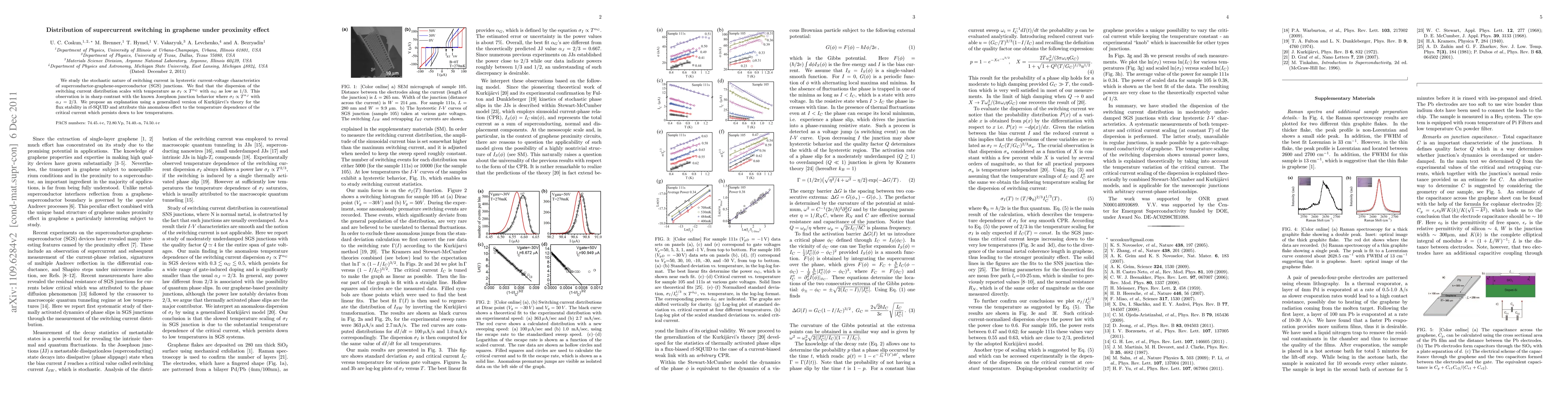 We study the stochastic nature of switching current in hysteretic current-voltage characteristics of superconductor-graphene-superconductor (SGS) junctions. We find that the dispersion of the switching current distribution scales with temperature as a power law with the power close to 1/3. This observation is in sharp contrast with the known Josephson junction behavior where switching current dispersion is expected to scale with the power 2/3. We propose an explanation using a generalized version of Kurkijarvi's theory for the flux stability in rf-SQUID and attribute this anomalous effect to the temperature dependence of the critical current which persists down to low temperatures.