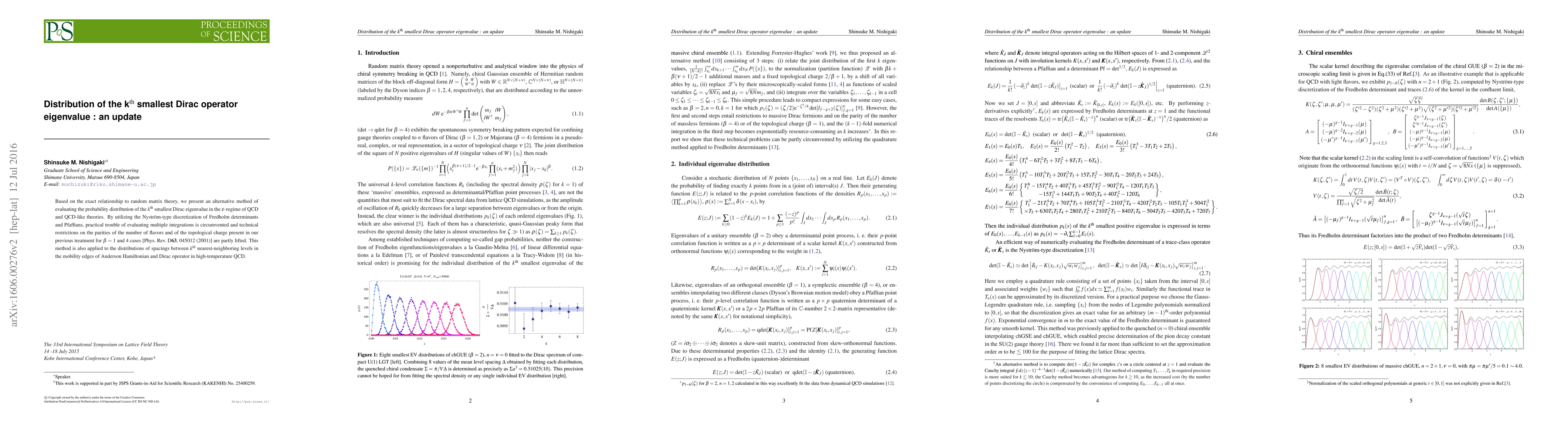 This paper presents an alternative method for evaluating the probability distribution of the k-th smallest Dirac operator eigenvalue in QCD and related theories, leveraging Nystrom-type discretization to bypass multiple integration issues. The method extends beyond previous technical restrictions and is also applied to level spacing distributions in Anderson Hamiltonian and high-temperature QCD.