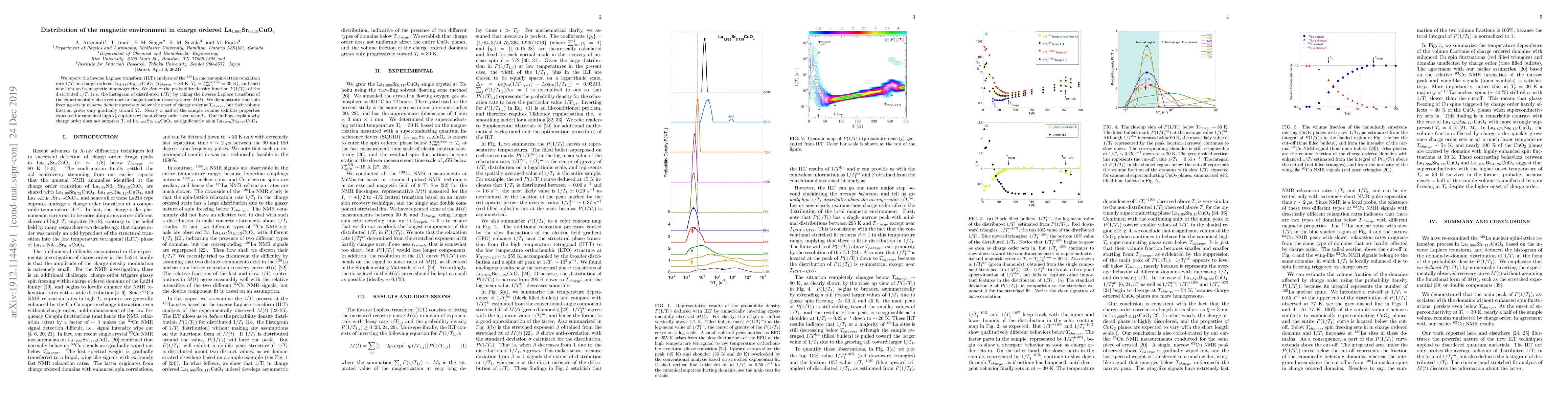 We report the inverse Laplace transform (ILT) analysis of the $^{139}$La nuclear spin-lattice relaxation rate $1/T_1$ in charge ordered La$_{1.885}$Sr$_{0.115}$CuO$_4$ ($T_{charge} \sim 80$K, $T_{c} \simeq T_{spin}^{neutron}=30$K), and shed new light on its magnetic inhomogeneity. We deduce the probability density function $P(1/T_{1})$ of the distributed $1/T_1$ (i.e. the histogram of distributed $1/T_1$) by taking the inverse Laplace transform of the experimentally observed nuclear magnetization recovery curve $M(t)$. We demonstrate that spin freezing sets in in some domains precisely below the onset of charge order at $T_{charge}$, but their volume fraction grows only gradually toward $T_{c}$. Nearly a half of the sample volume exhibits properties expected for canonical high $T_c$ cuprates without charge order even near $T_c$. Our findings explain why charge order does not suppress $T_c$ of La$_{1.885}$Sr$_{0.115}$CuO$_4$ as significantly as in La$_{1.875}$Ba$_{0.125}$CuO$_4$.