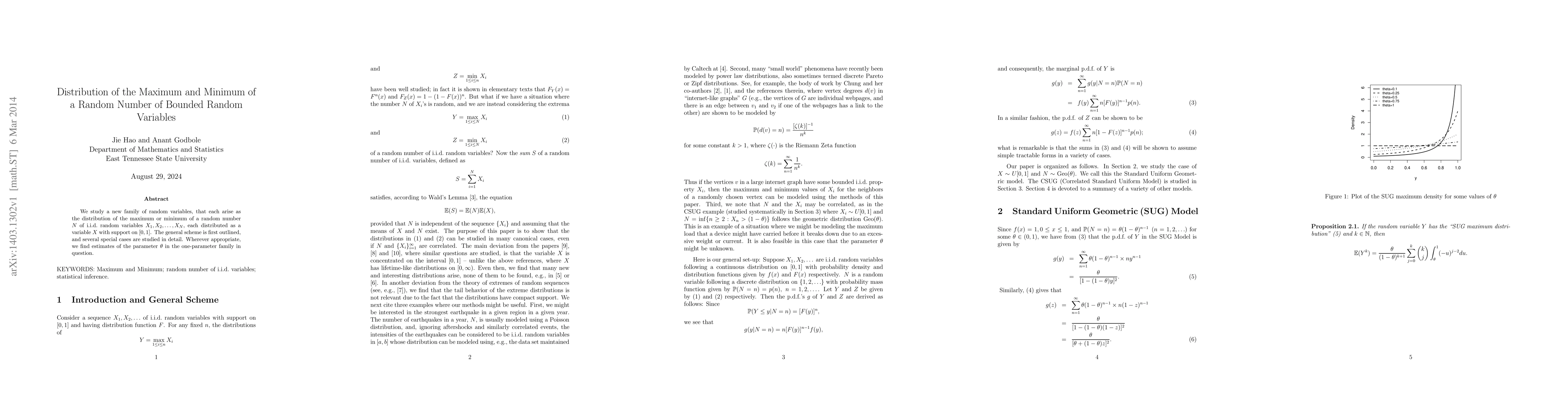 This paper investigates the distribution of the maximum and minimum of a random number of bounded, identically distributed random variables. It provides detailed analysis of special cases and estimates the parameter $\theta$ for the resulting family of distributions.
