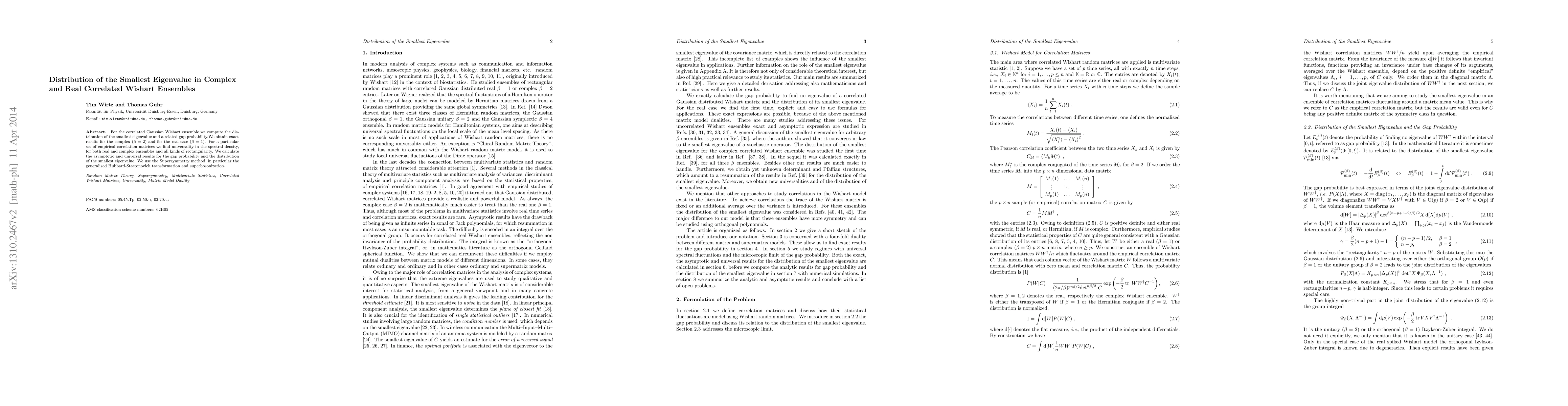 This research computes the exact distribution of the smallest eigenvalue and gap probability for correlated Gaussian Wishart ensembles in complex and real cases. Universality in spectral density is observed across different ensembles, and the Supersymmetry method is employed to derive asymptotic and universal results.