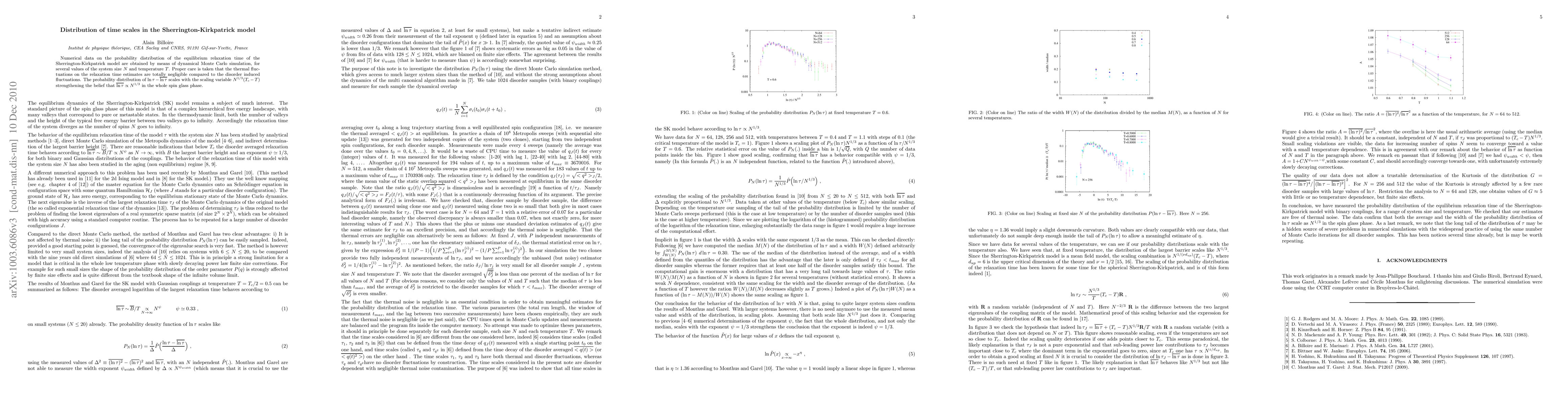 Numerical data on the probability distribution of the equilibrium relaxation time of the Sherrington-Kirkpatrick model are obtained by means of dynamical Monte Carlo simulation, for several values of the system size $N$ and temperature $T$. Proper care is taken that the thermal fluctuations on the relaxation time estimates are totally negligible compared to the disorder induced fluctuations. The probability distribution of $\ln\tau-\overline{\ln\tau}$ scales with the scaling variable $N^{1/3} (T_c-T)$ strengthening the belief that $\overline{\ln\tau}\propto N^{1/3}$ in the whole spin glass phase.