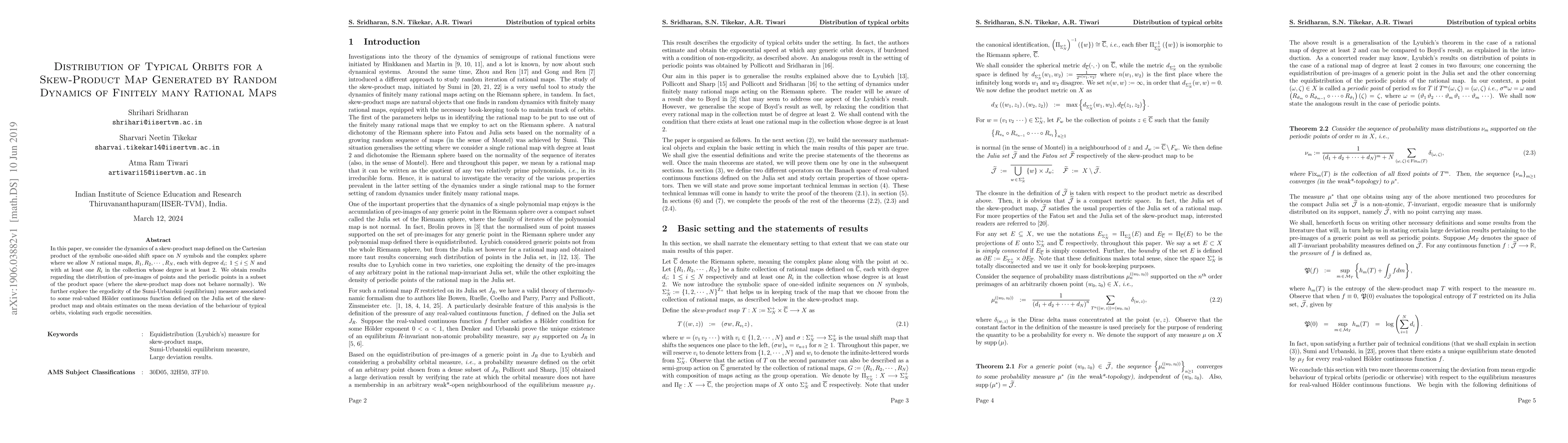 In this paper, we consider the dynamics of a skew-product map defined on the Cartesian product of the symbolic one-sided shift space on $N$ symbols and the complex sphere where we allow $N$ rational maps, $R_{1}, R_{2}, \cdots, R_{N}$, each with degree $d_{i};\ 1 \le i \le N$ and with at least one $R_{i}$ in the collection whose degree is at least $2$. We obtain results regarding the distribution of pre-images of points and the periodic points in a subset of the product space (where the skew-product map does not behave normally). We further explore the ergodicity of the Sumi-Urbanskii (equilibrium) measure associated to some real-valued H\"{o}lder continuous function defined on the Julia set of the skew-product map and obtain estimates on the mean deviation of the behaviour of typical orbits, violating such ergodic necessities.