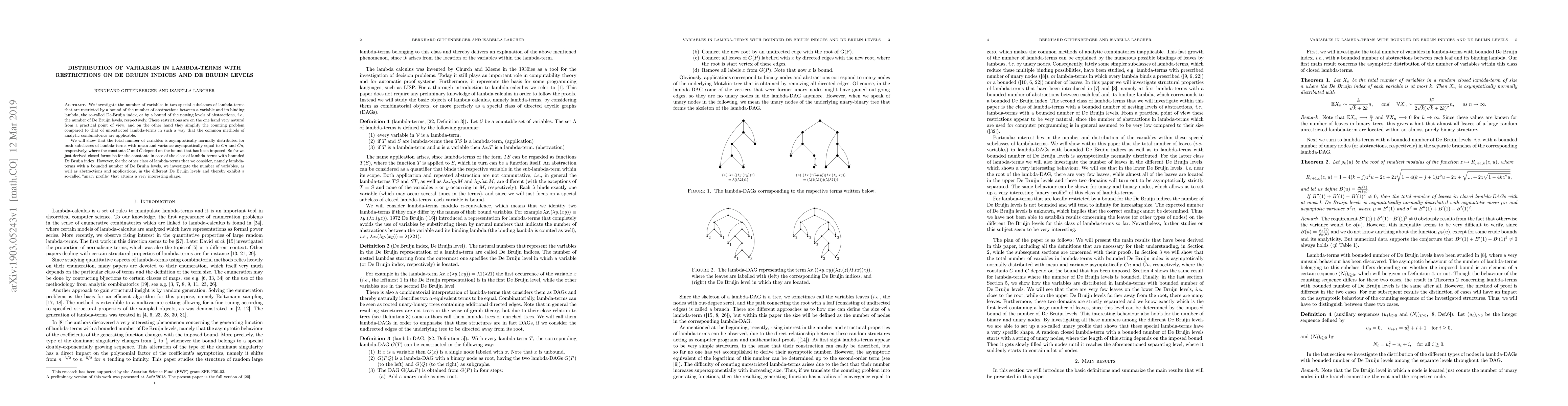 This paper studies two subclasses of lambda-terms restricted by bounds on De Bruijn indices or levels, demonstrating that the number of variables in these subclasses is asymptotically normally distributed with specific mean and variance dependent on the imposed bounds. Closed formulas for constants are derived for terms with bounded De Bruijn indices, while an intriguing "unary profile" is identified for terms with bounded De Bruijn levels.