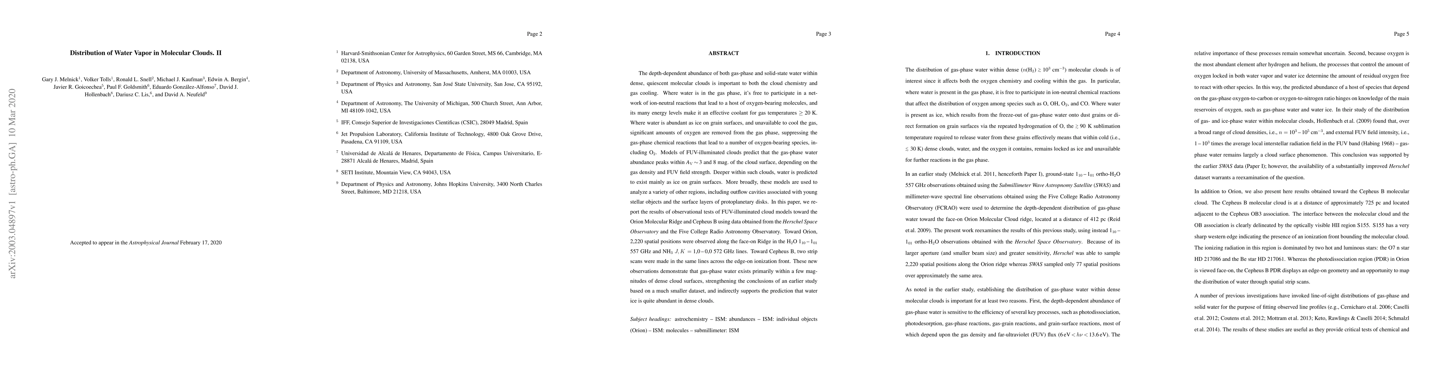 This paper investigates the distribution of water vapor in dense, quiescent molecular clouds, confirming that gas-phase water is most abundant near the cloud surfaces, while deeper regions predominantly contain water as ice on grain surfaces. Observations from the Herschel Space Observatory and Five College Radio Astronomy Observatory support these findings.