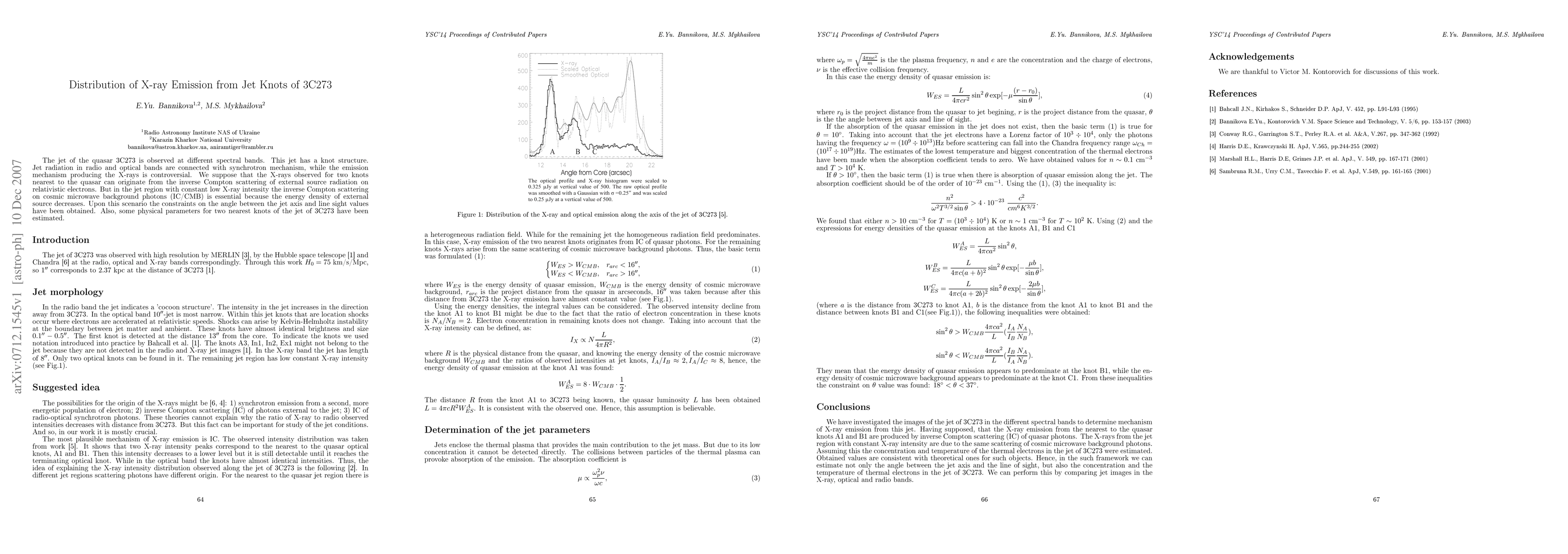 Research on 3C273's jet knot structure reveals that X-ray emissions may originate from inverse Compton scattering of external source radiation on relativistic electrons or cosmic microwave background photons.