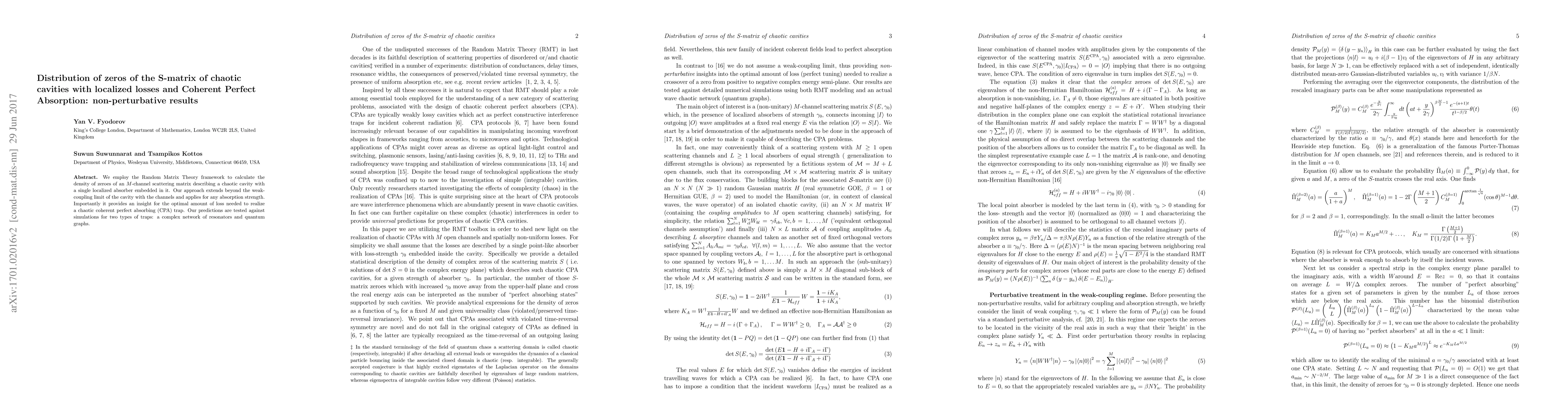 Researchers used Random Matrix Theory to study the distribution of zeros in a chaotic cavity with localized losses, predicting optimal loss levels for a coherent perfect absorbing trap. Their findings were validated through simulations of two types of traps: complex networks and quantum graphs.