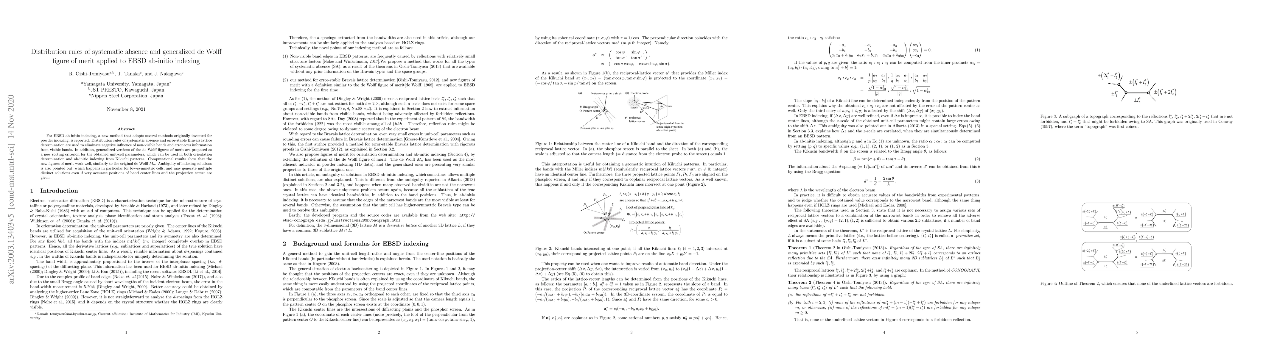 Researchers develop a new method for EBSD ab-initio indexing that improves accuracy by eliminating negative influences of non-visible bands and proposing generalized de Wolff figures of merit to sort unit-cell parameters. The results show that the new approach works well, but can sometimes generate multiple distinct solutions.