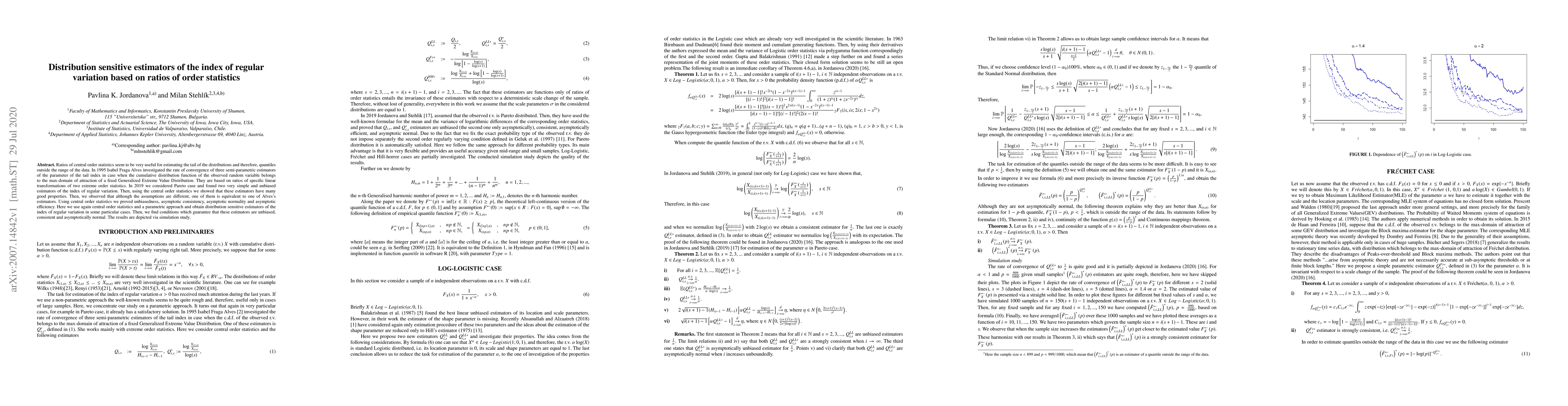 Ratios of central order statistics seem to be very useful for estimating the tail of the distributions and therefore, quantiles outside the range of the data. In 1995 Isabel Fraga Alves investigated the rate of convergence of three semi-parametric estimators of the parameter of the tail index in case when the cumulative distribution function of the observed random variable belongs to the max-domain of attraction of a fixed Generalized Extreme Value Distribution. They are based on ratios of specific linear transformations of two extreme order statistics. In 2019 we considered Pareto case and found two very simple and unbiased estimators of the index of regular variation. Then, using the central order statistics we showed that these estimators have many good properties. Then, we observed that although the assumptions are different, one of them is equivalent to one of Alves's estimators. Using central order statistics we proved unbiasedness, asymptotic consistency, asymptotic normality and asymptotic efficiency. Here we use again central order statistics and a parametric approach and obtain distribution sensitive estimators of the index of regular variation in some particular cases. Then, we find conditions which guarantee that these estimators are unbiased, consistent and asymptotically normal. The results are depicted via simulation study.