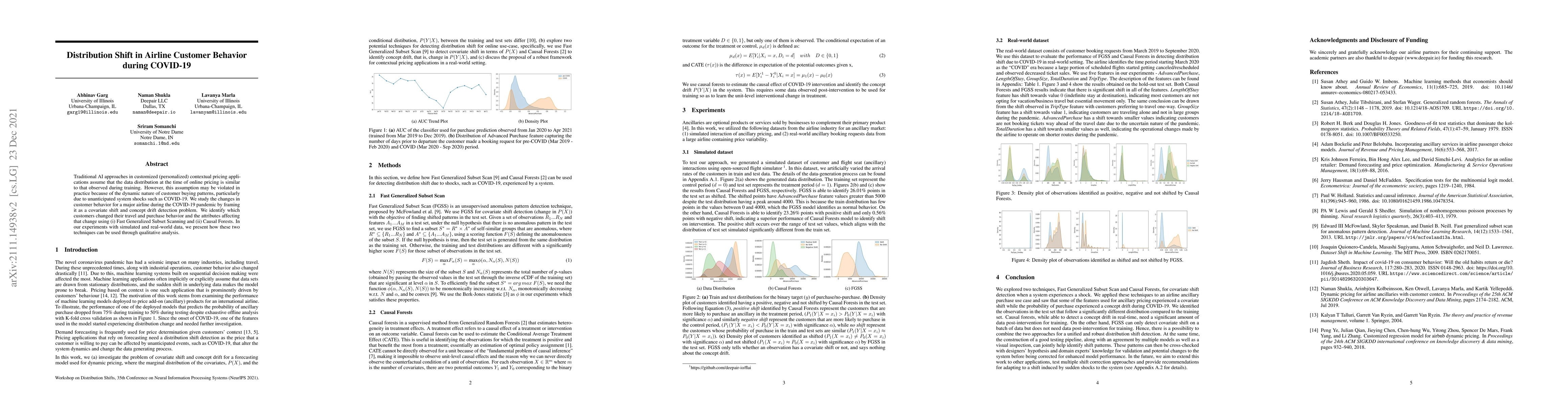 This paper investigates shifts in airline customer behavior during the COVID-19 pandemic, framing it as a covariate shift and concept drift detection problem. It employs Fast Generalized Subset Scanning and Causal Forests to identify changes in travel and purchase behavior, revealing the attributes influencing these shifts.