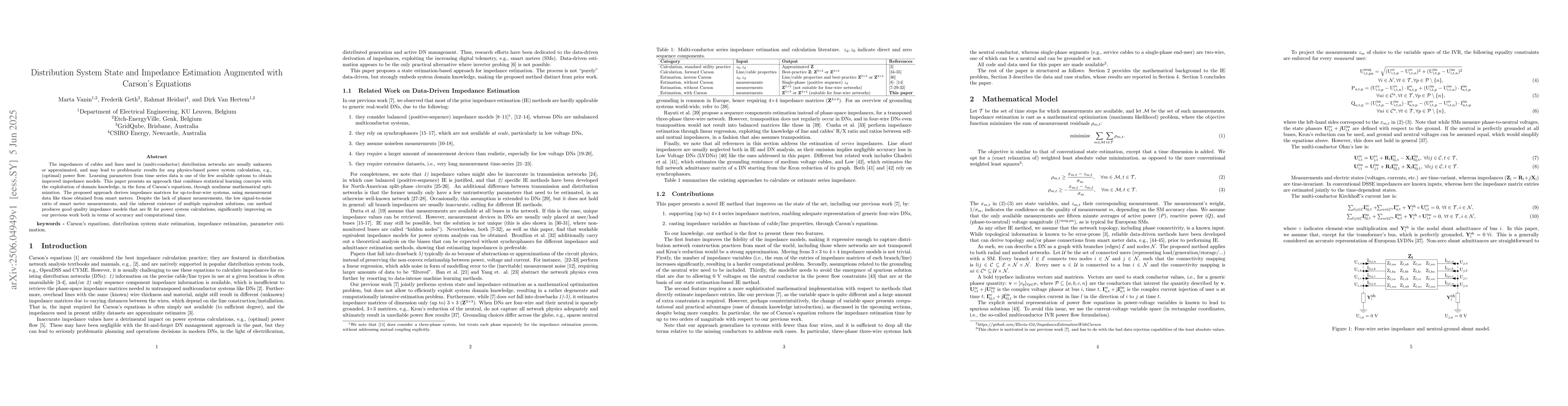 The integration of Carson's equations with statistical learning for impedance estimation in distribution systems.
