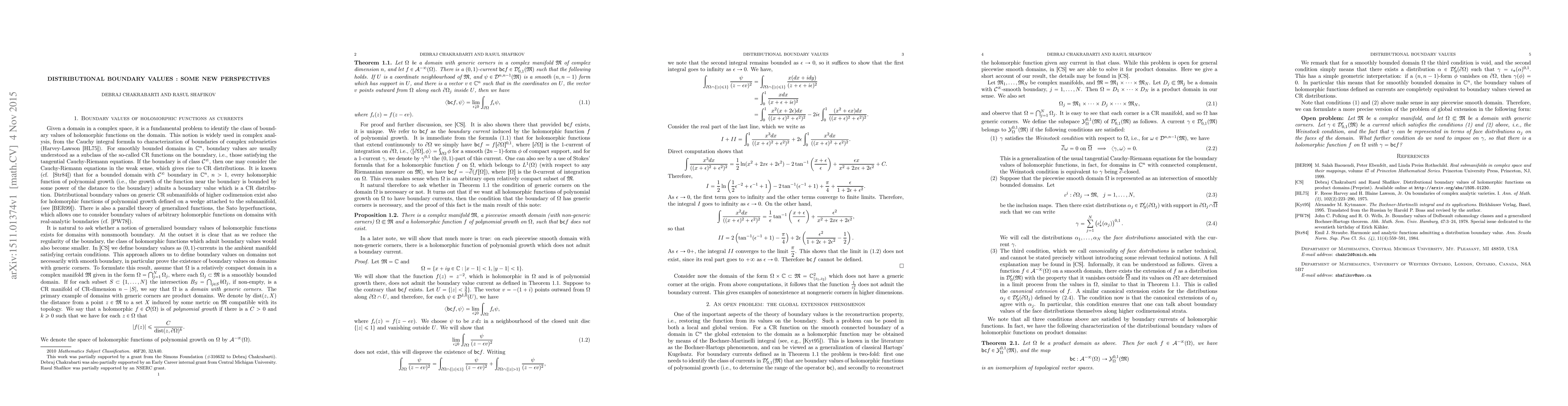 Researchers explore recent advances in distributional boundary values theory, highlighting the need for generic corners in piecewise smooth domains to ensure existence of boundary values.
