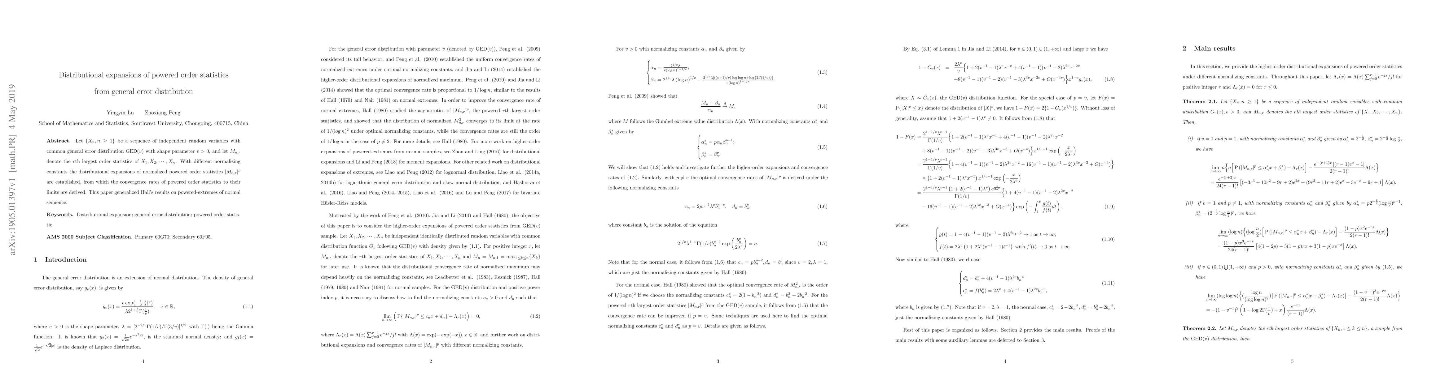 This paper establishes distributional expansions for powered order statistics from a general error distribution, deriving convergence rates for normalized powered order statistics and generalizing Hall's results on powered-extremes from normal sequences.