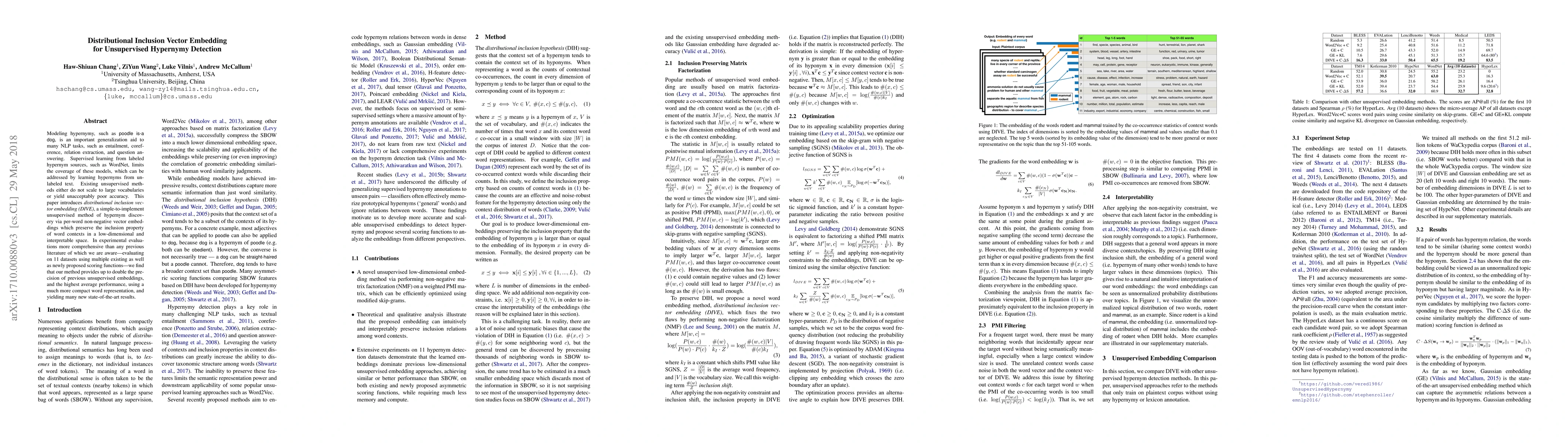 This paper introduces DIVE, an unsupervised method for detecting hypernyms using non-negative vector embeddings that preserve word context inclusion. Experimental results show DIVE achieves up to double the precision of previous methods, achieving state-of-the-art performance across 11 datasets.