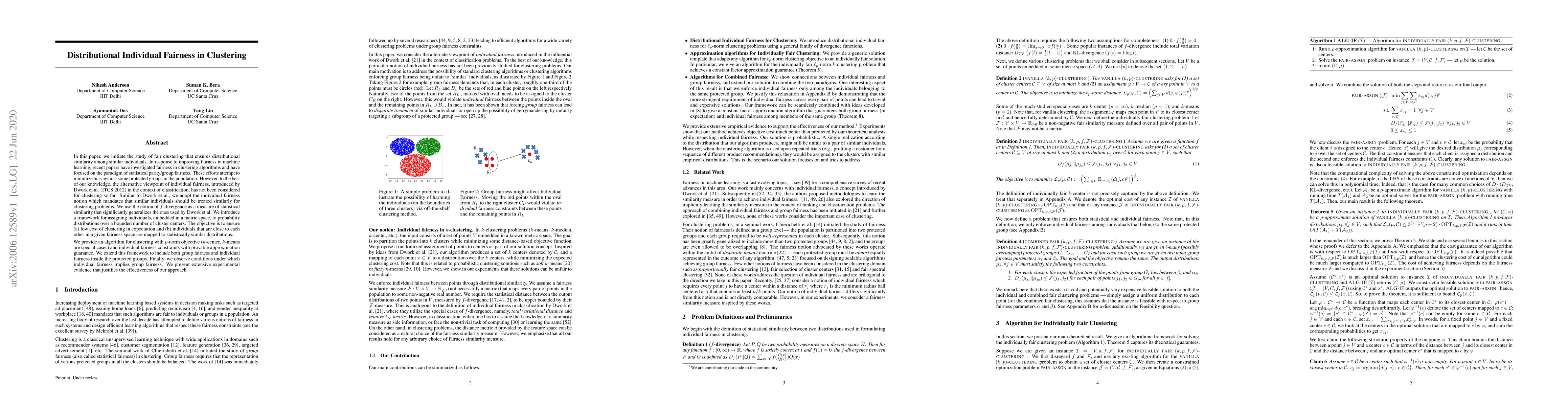 This paper introduces a novel framework for fair clustering that ensures distributional similarity among similar individuals, using individual fairness principles. It provides an algorithm with a provable approximation guarantee for clustering under $p$-norm objectives, integrating both individual and group fairness constraints.