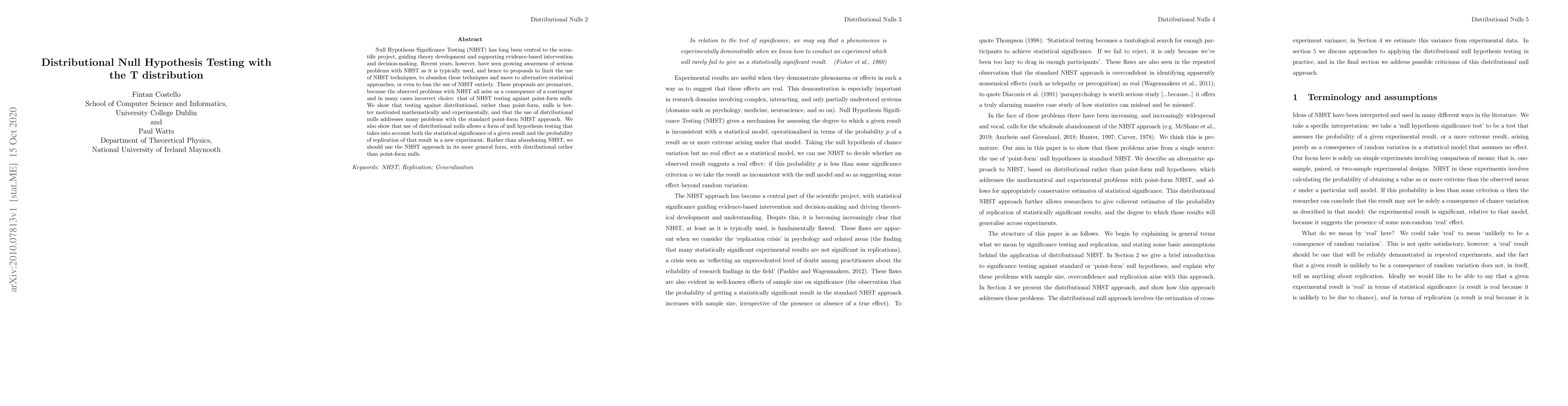 This paper argues that the issues with traditional Null Hypothesis Significance Testing (NHST) stem from testing against point-form nulls rather than distributional nulls. It proposes that using distributional nulls can address many of these problems and improve both the mathematical and experimental motivations of NHST.