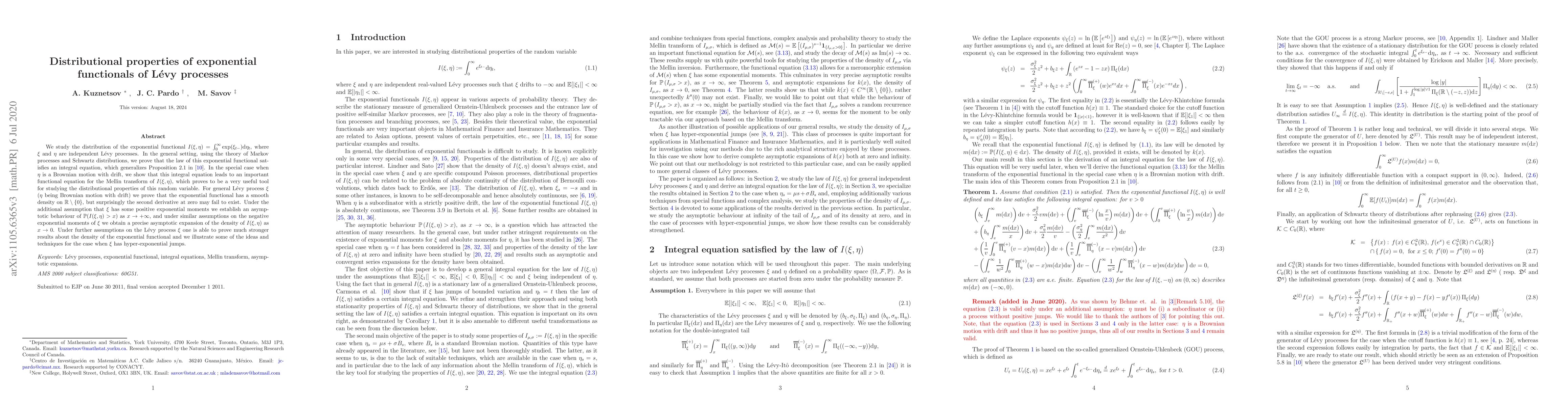 This paper investigates the distributional properties of exponential functionals of independent Lévy processes, proving an integral equation that generalizes previous results. It highlights the special case where the integrator is a Brownian motion with drift, leading to a functional equation for the Mellin transform, and discusses the density and asymptotic behavior of the exponential functional under various assumptions on the Lévy process.