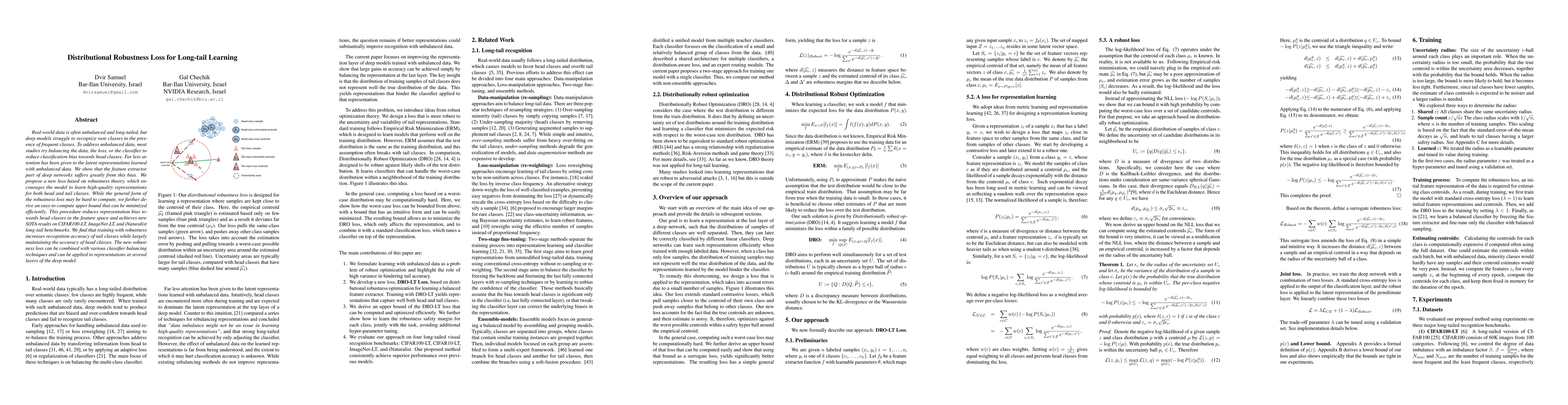 Real-world data is often unbalanced and long-tailed, but deep models struggle to recognize rare classes in the presence of frequent classes. To address unbalanced data, most studies try balancing the data, the loss, or the classifier to reduce classification bias towards head classes. Far less attention has been given to the latent representations learned with unbalanced data. We show that the feature extractor part of deep networks suffers greatly from this bias. We propose a new loss based on robustness theory, which encourages the model to learn high-quality representations for both head and tail classes. While the general form of the robustness loss may be hard to compute, we further derive an easy-to-compute upper bound that can be minimized efficiently. This procedure reduces representation bias towards head classes in the feature space and achieves new SOTA results on CIFAR100-LT, ImageNet-LT, and iNaturalist long-tail benchmarks. We find that training with robustness increases recognition accuracy of tail classes while largely maintaining the accuracy of head classes. The new robustness loss can be combined with various classifier balancing techniques and can be applied to representations at several layers of the deep model.