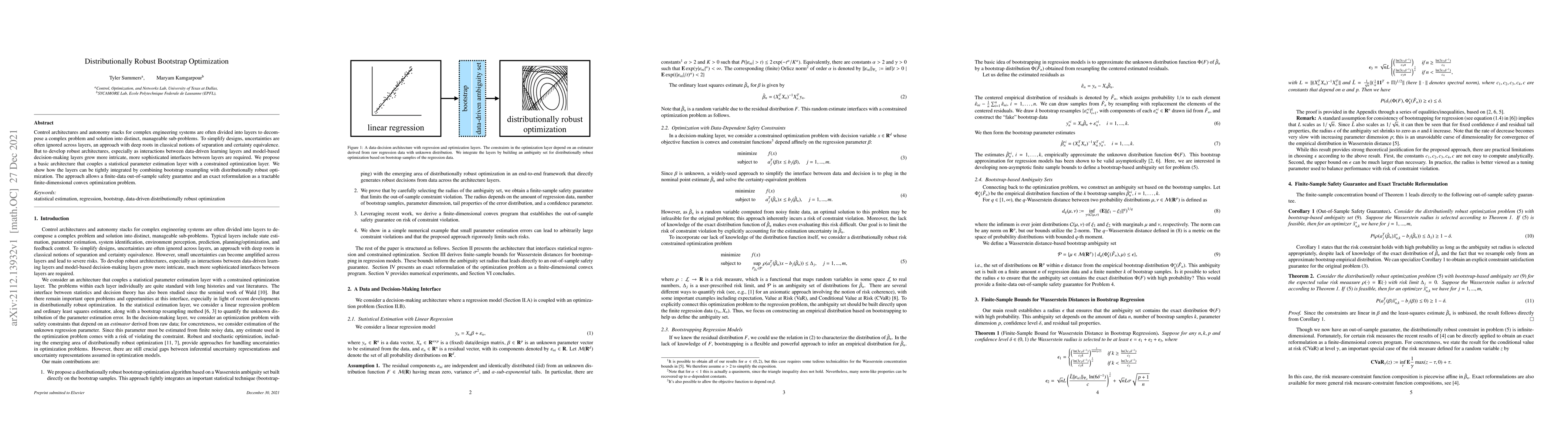 Control architectures and autonomy stacks for complex engineering systems are often divided into layers to decompose a complex problem and solution into distinct, manageable sub-problems. To simplify designs, uncertainties are often ignored across layers, an approach with deep roots in classical notions of separation and certainty equivalence. But to develop robust architectures, especially as interactions between data-driven learning layers and model-based decision-making layers grow more intricate, more sophisticated interfaces between layers are required. We propose a basic architecture that couples a statistical parameter estimation layer with a constrained optimization layer. We show how the layers can be tightly integrated by combining bootstrap resampling with distributionally robust optimization. The approach allows a finite-data out-of-sample safety guarantee and an exact reformulation as a tractable finite-dimensional convex optimization problem.